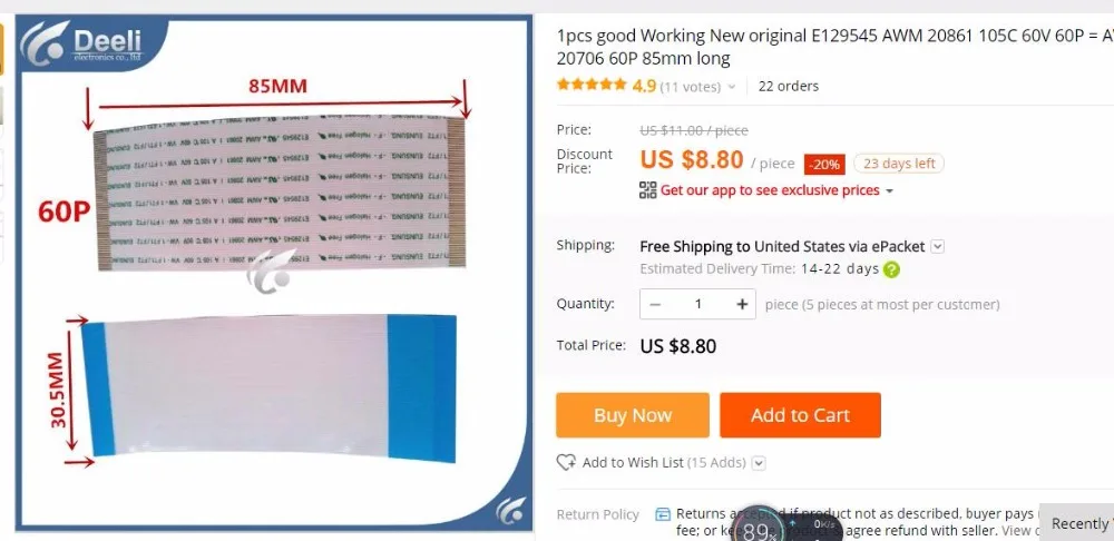 1 шт., хорошо работающий Новый E129545 AWM 20861 AWM 20706 105C 60V 60P = AWM 20706 60P 85 мм