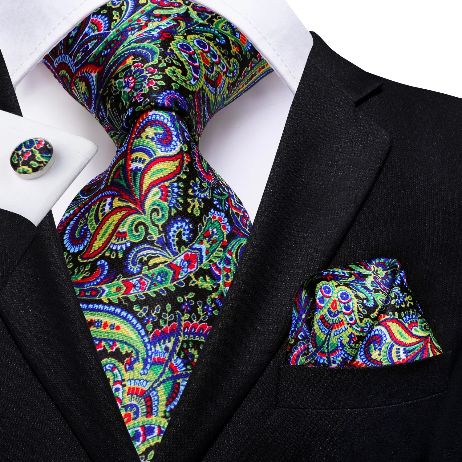 Hi-Tie новый дизайн зеленый цветочный мужской галстук 100% шелковые носовые запонки галстук для мужчин галстуки для деловых свадебных вечеринок