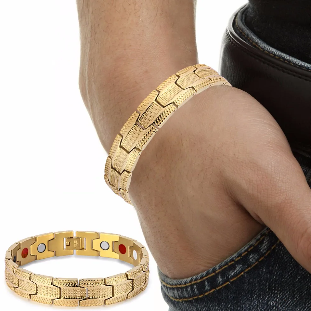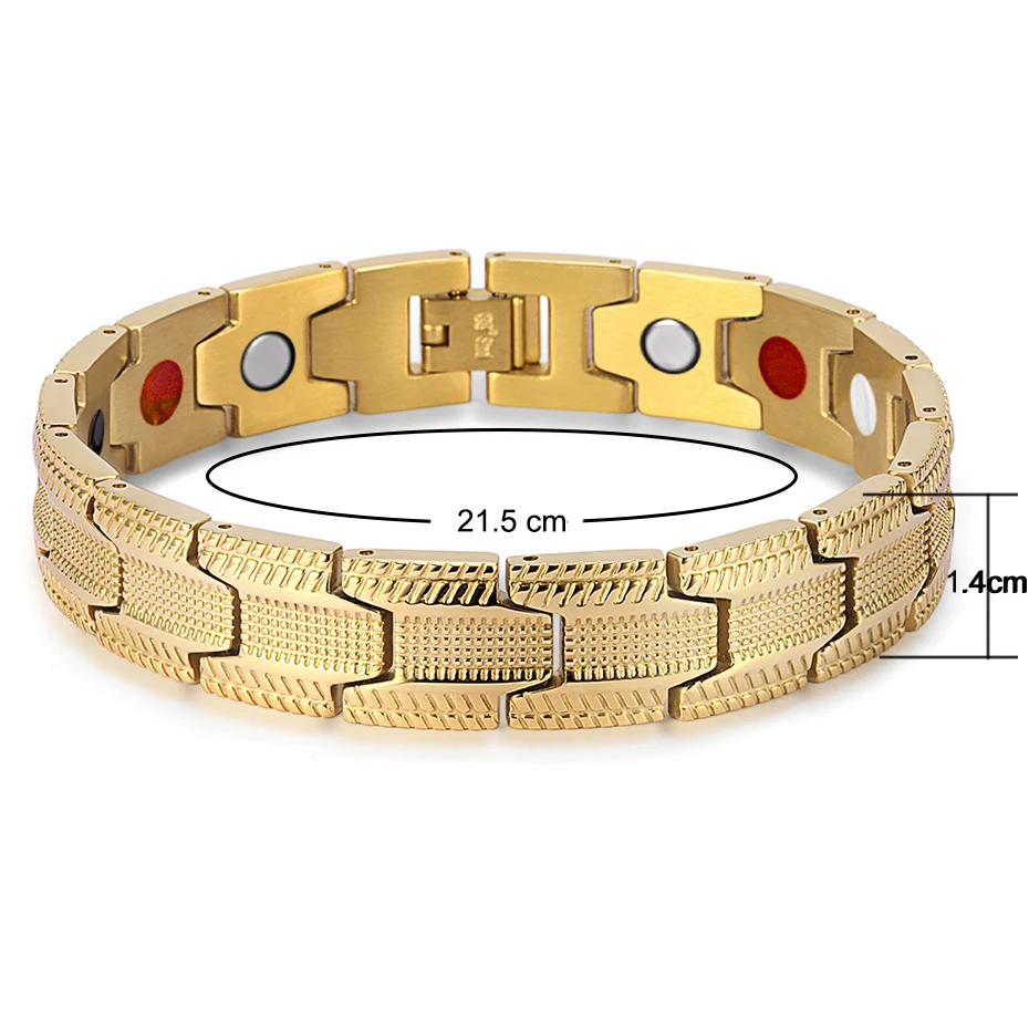 Rainso двухрядные четыре Ele для мужчин ts Золото Нержавеющая сталь браслеты Магнитная био Pulceras ссылка браслет для
