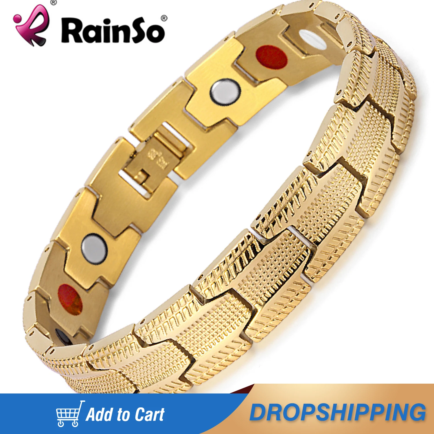 Rainso 4 в 1 Ele для мужчин ts Золото Нержавеющая сталь браслеты Магнитная био Pulceras ссылка браслет для OSB-1891GFIR
