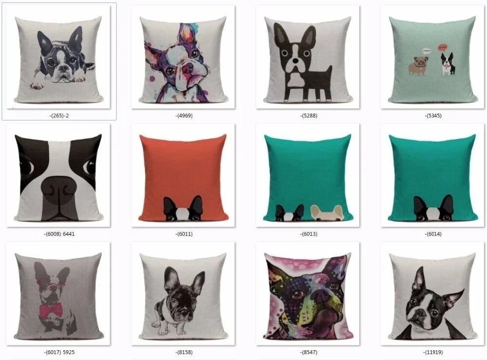 Лен Бостон терьер Французский бульдог подарки Роскошная подушка животное Подушка Чехол 45 см x 45 см квадратный стул на заказ Высокое качество подушки
