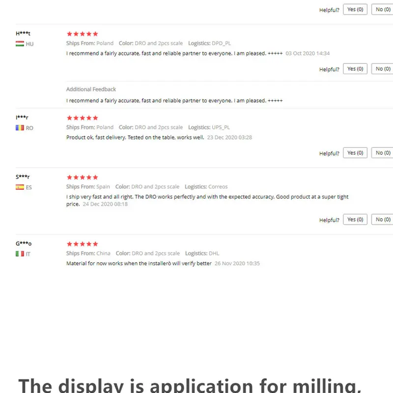Я отправляю очень быстро и в порядке. DRO прекрасно работает и с ожидаемой точностью. Хороший продукт по очень низкой цене.