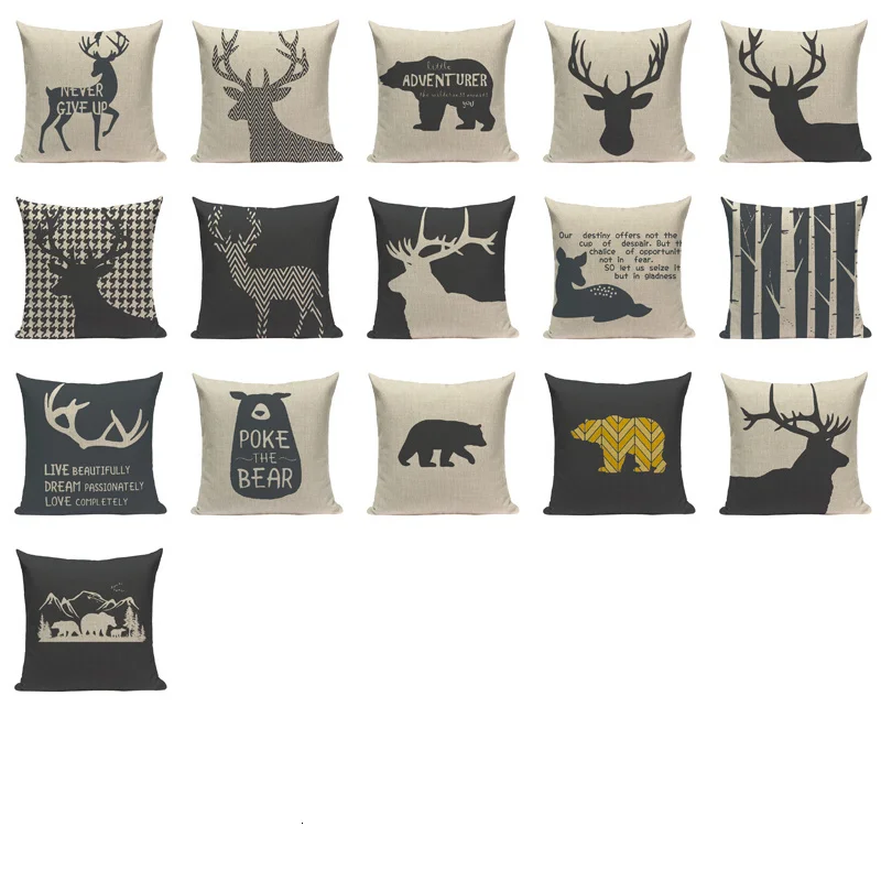 Скандинавские домашние декоративные Чехлы для подушек, Оригинальные подушки с оленями медведя на заказ, высокое качество, Декор 45 см x 45 см, квадратный принт, наволочка, чехол