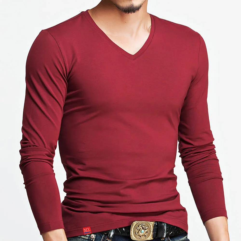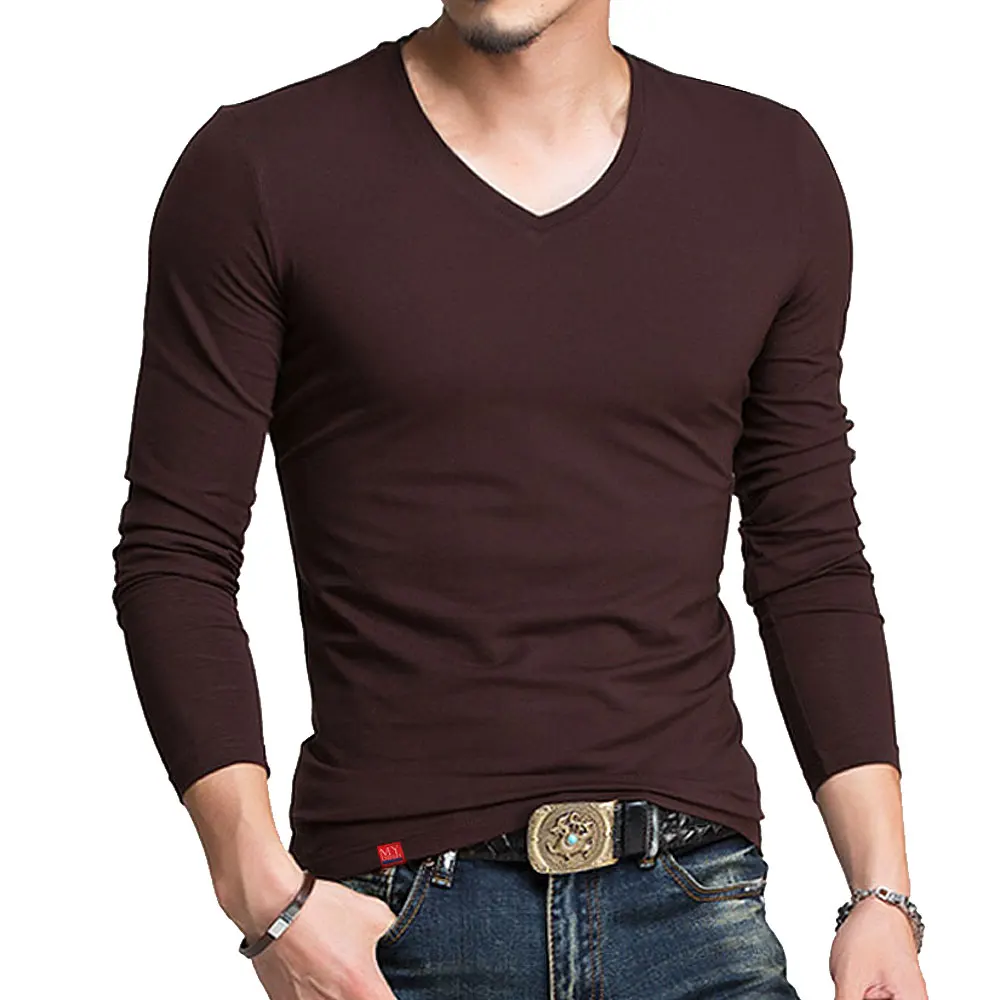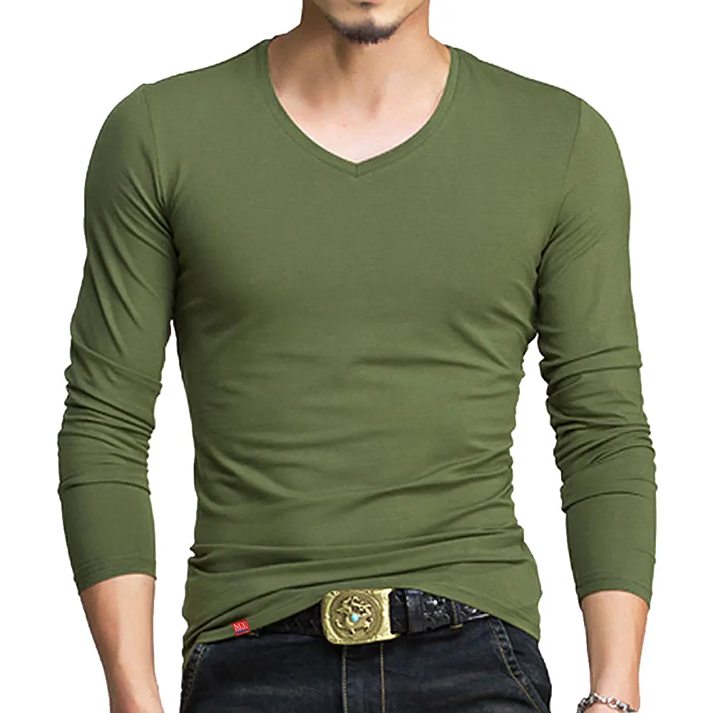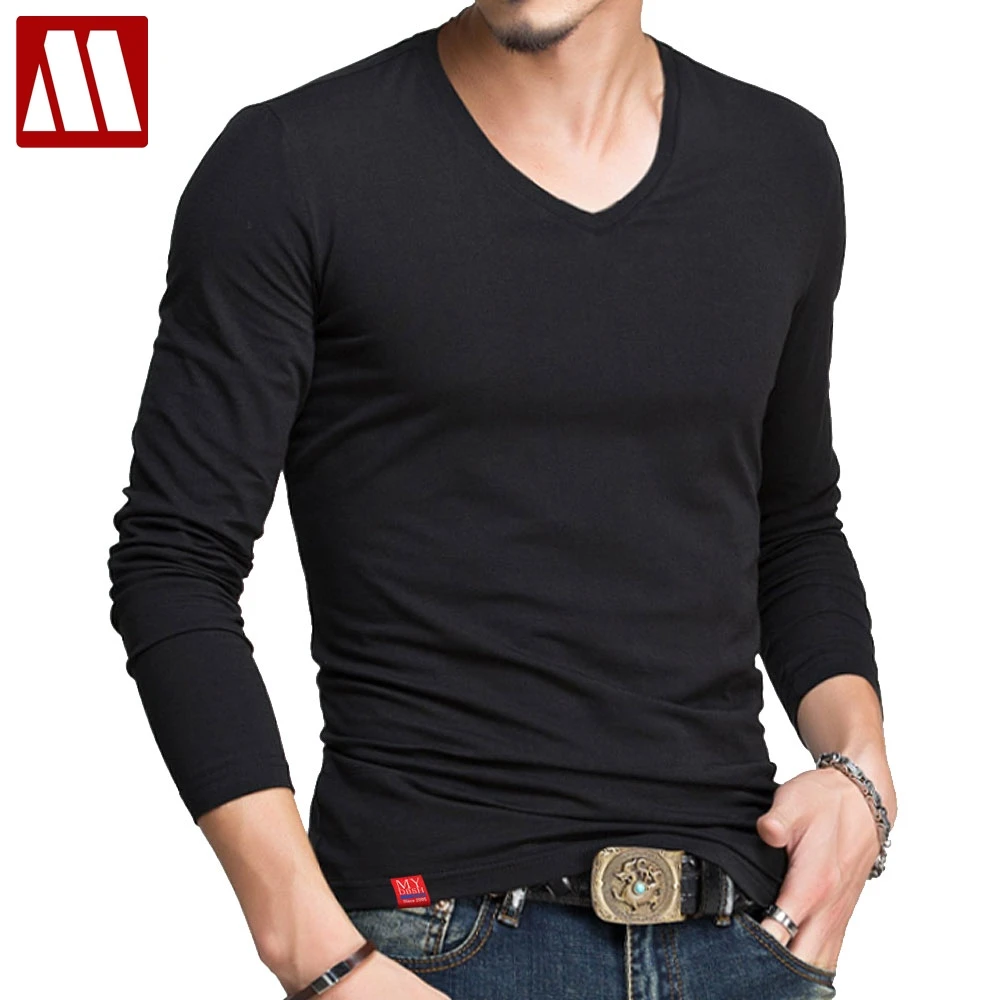Лидер продаж, Классическая мужская футболка с длинным рукавом, футболки для фитнеса с v-образным вырезом, мужские облегающие футболки, Дизайнерские однотонные хлопковые футболки, топы 5XL