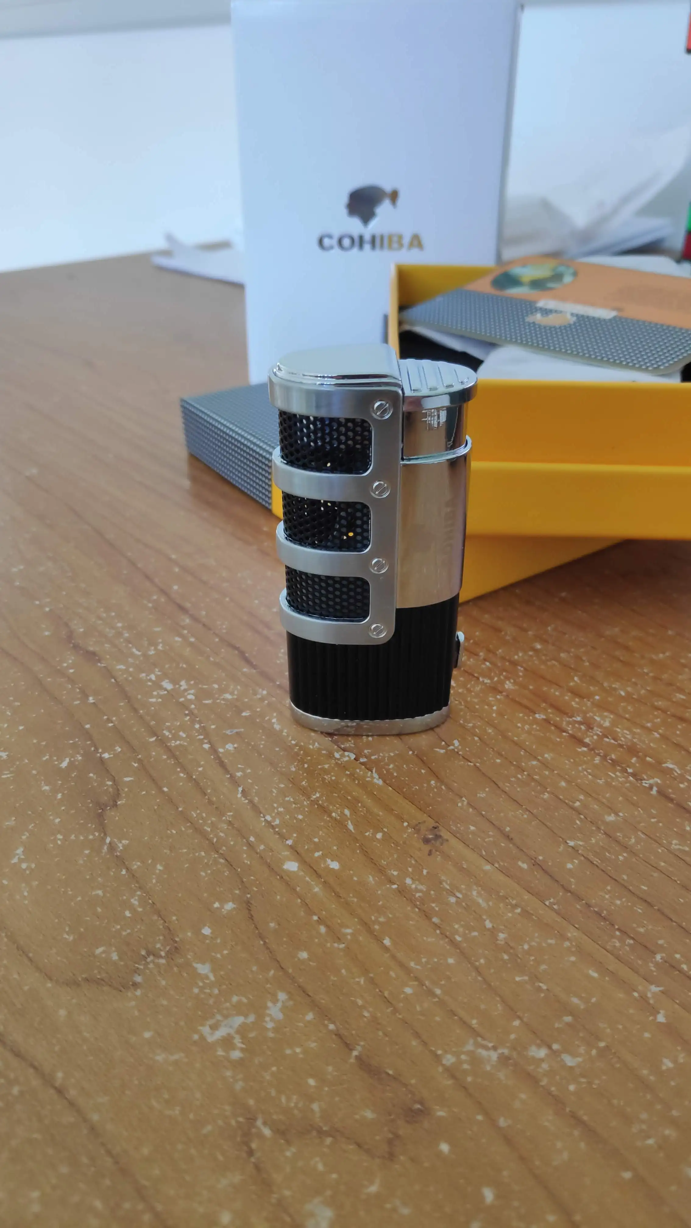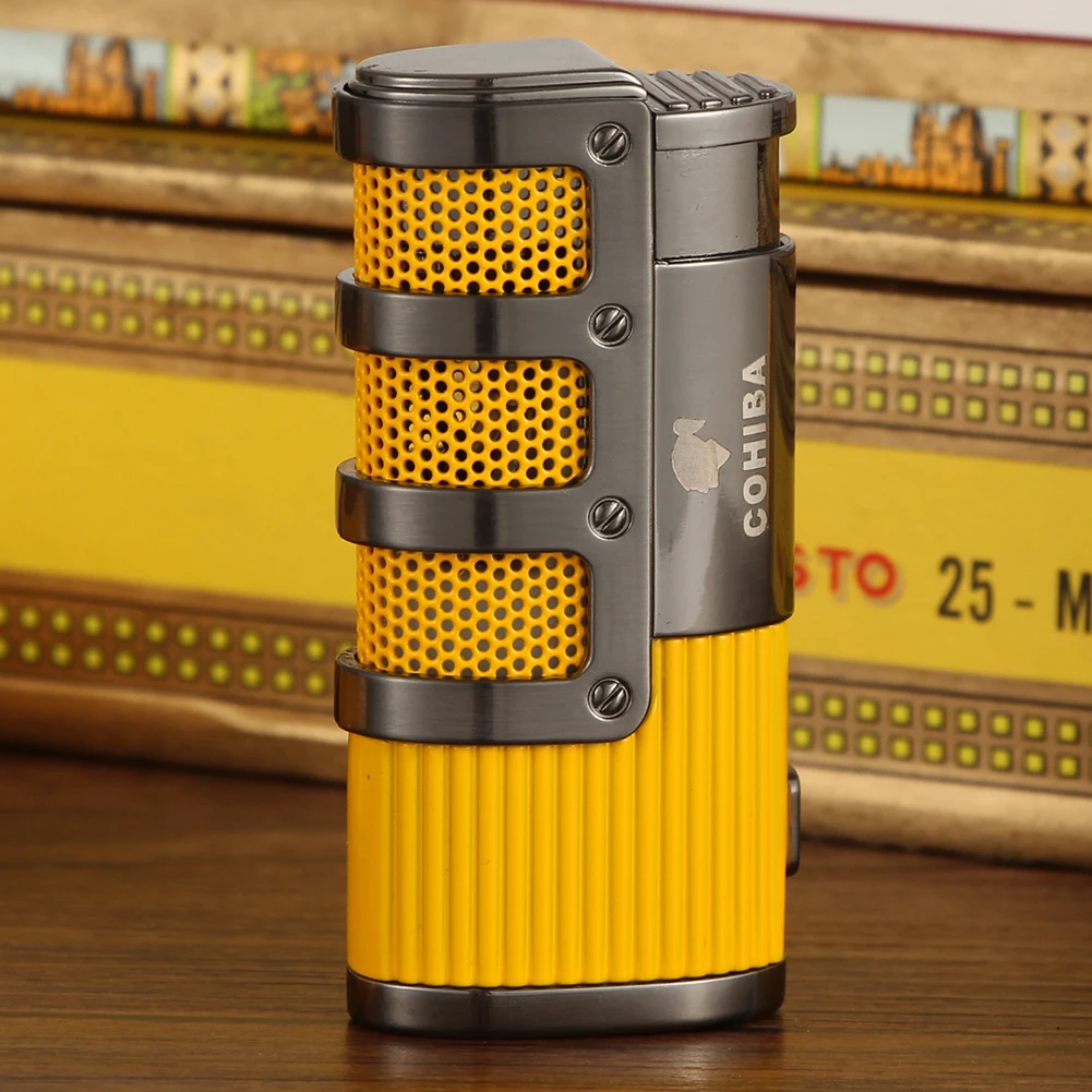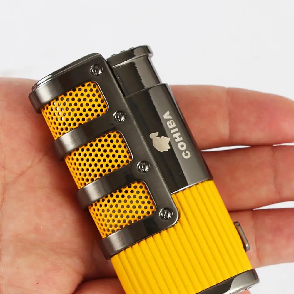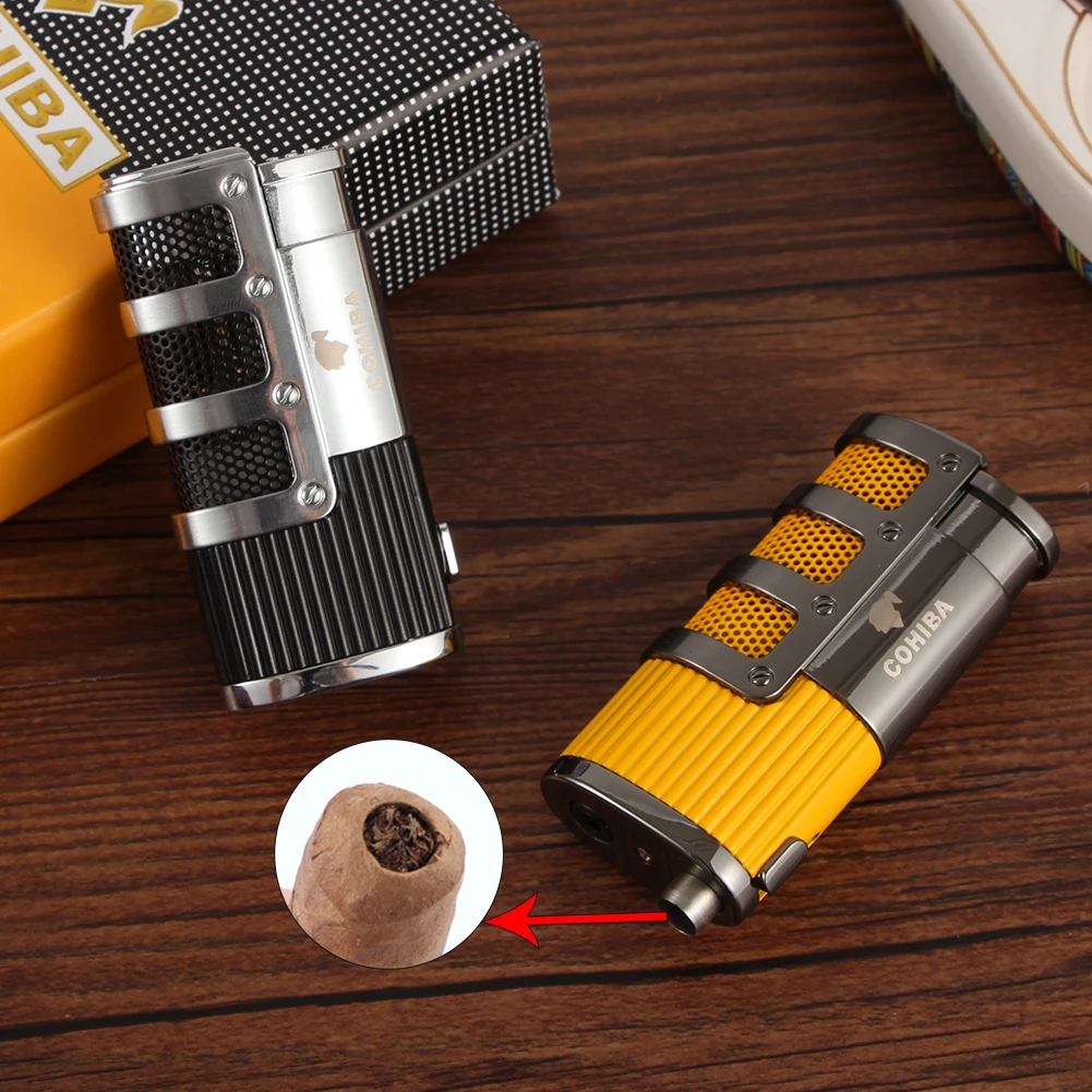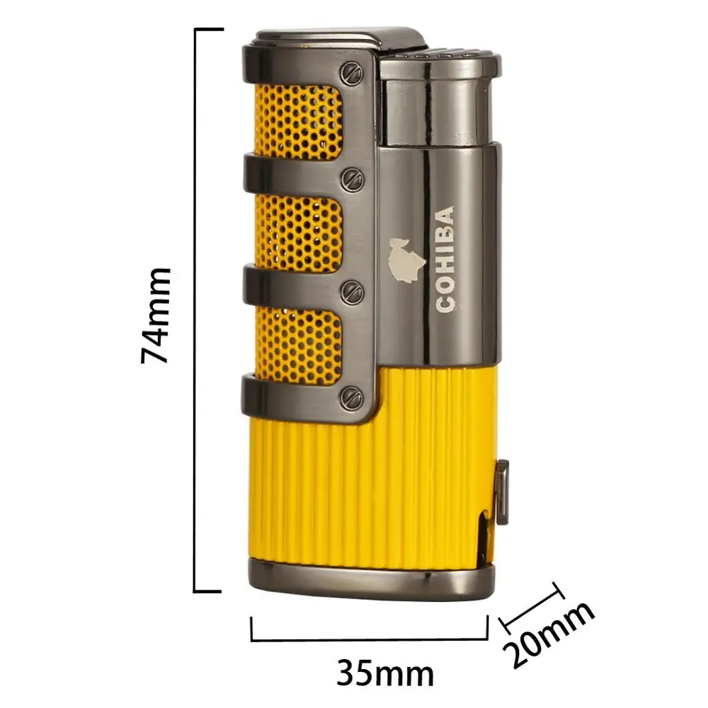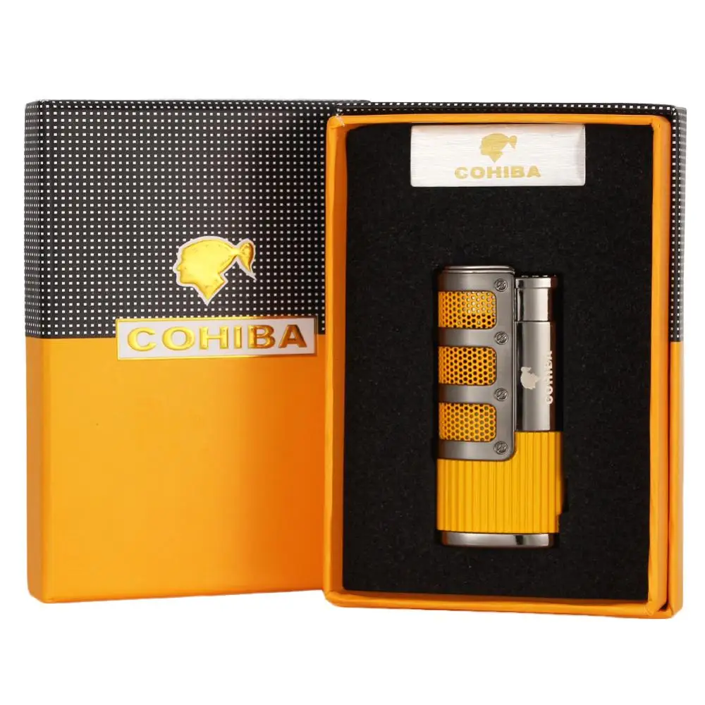 COHIBA зажигалка для сигар, Бутан, 3 фонарь, струйная зажигалка с резак для сигар, аксессуары, ветрозащитная зажигалка, подарочная коробка