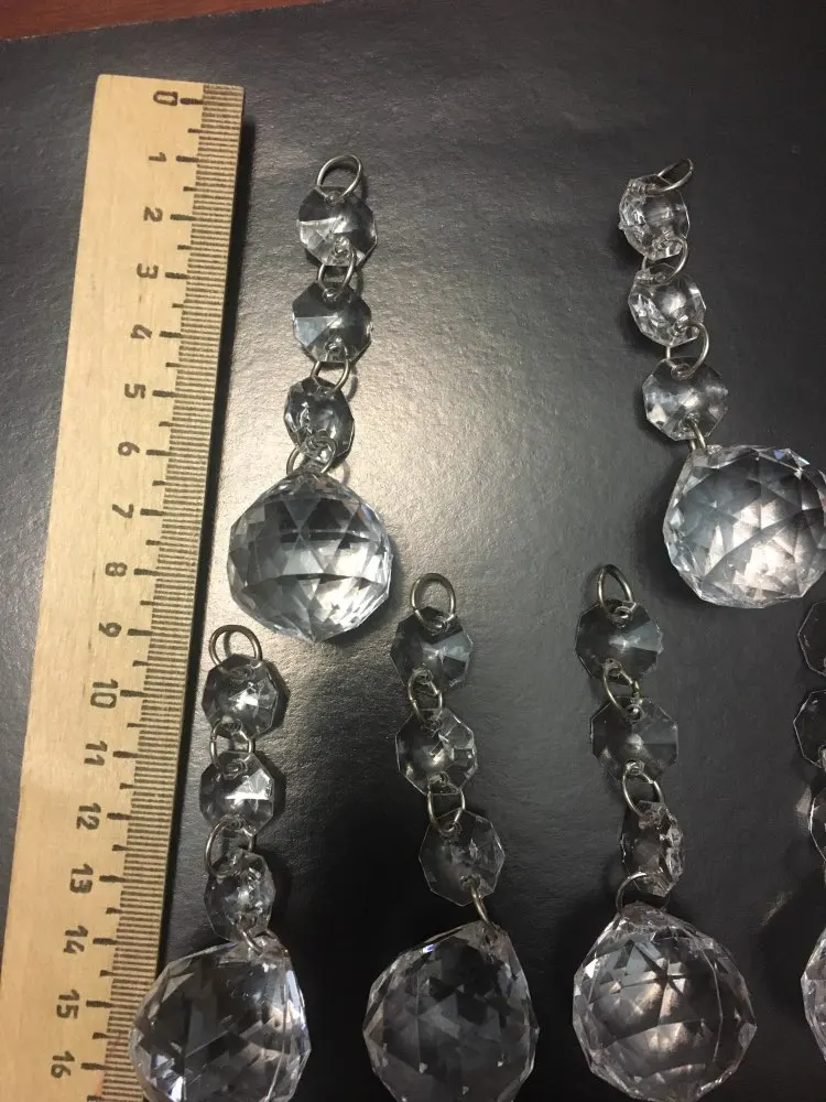 Заказала 2 комплекта 11.01.21, получила 29.01.21. Соответствует описанию. Упакованы хорошо, все бусины целые. Несколько бусин повесила на люстру, смотрятся хорошо от старых не отличаются. Кольца между звеньями другие, если приглядеться видно, но это не портит вид. Спасибо продавцу.