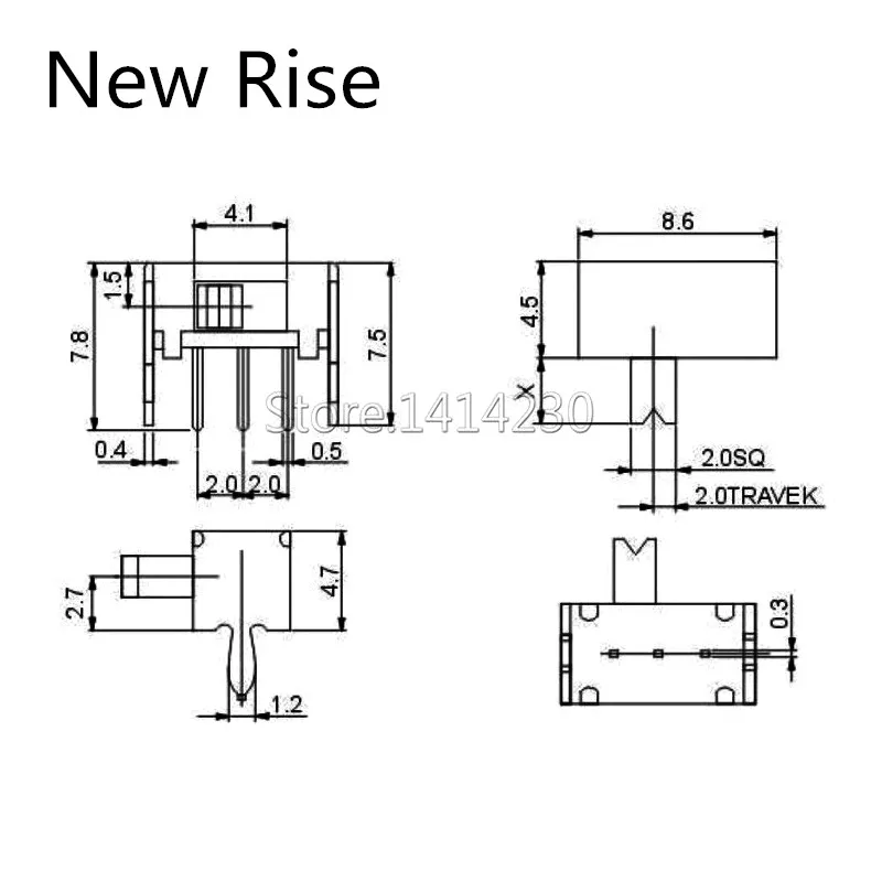 10 шт. 3-контактный PCB 2 положения 1P2T SPDT Миниатюрный переключатель скольжения Боковая ручка SK12D07VG4