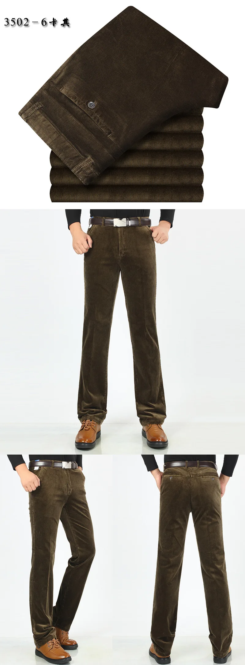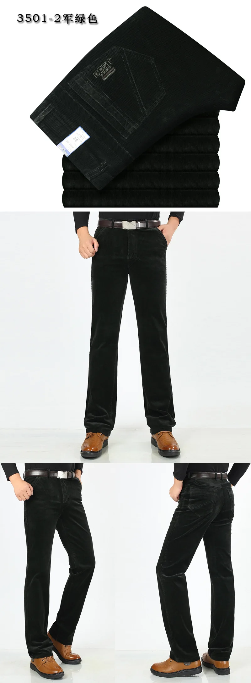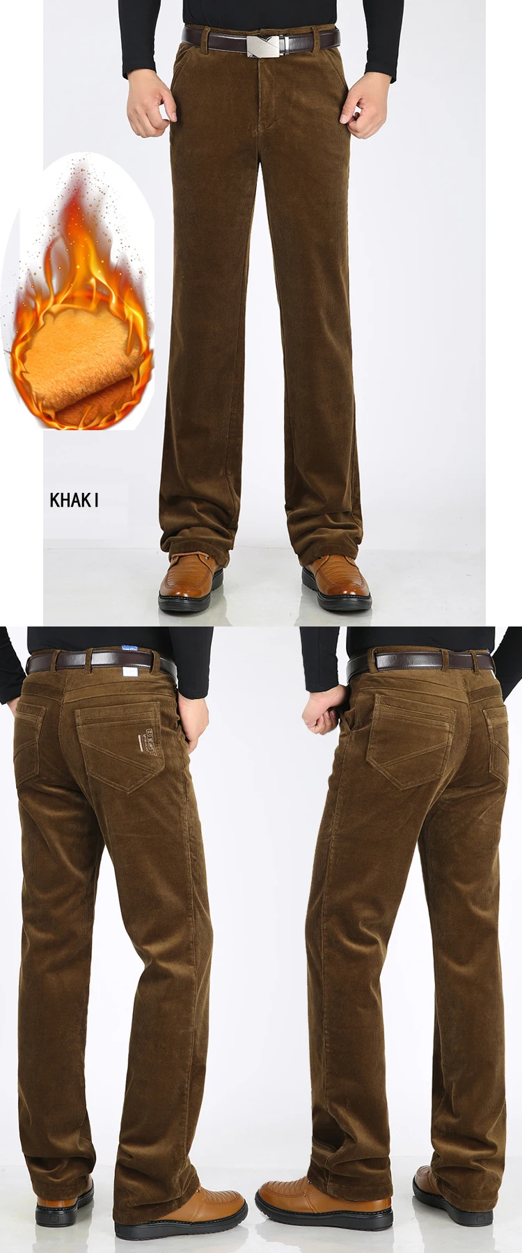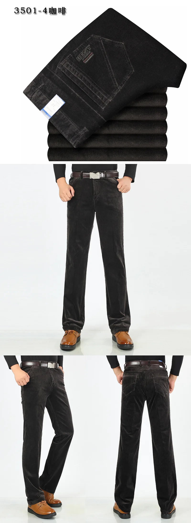 Вельветовые вельветовые брюки, для осени и зимы, мужские, деловые, повседневные, свободные, эластичные, для среднего возраста, прямые, на флисе, плотные, вельветовые