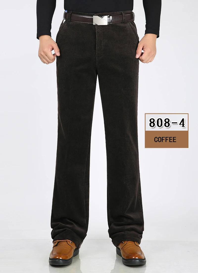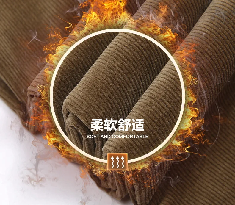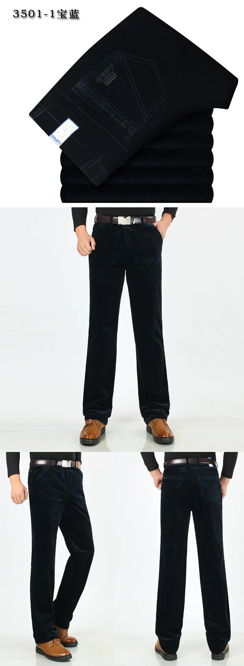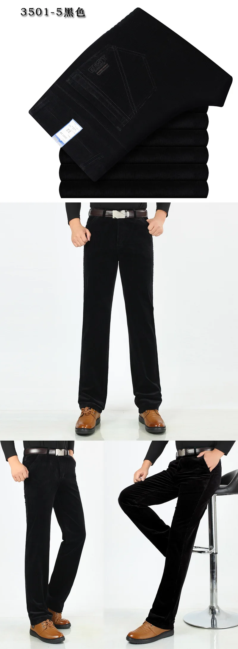 Вельветовые вельветовые брюки, для осени и зимы, мужские, деловые, повседневные, свободные, эластичные, для среднего возраста, прямые, на флисе, плотные, вельветовые