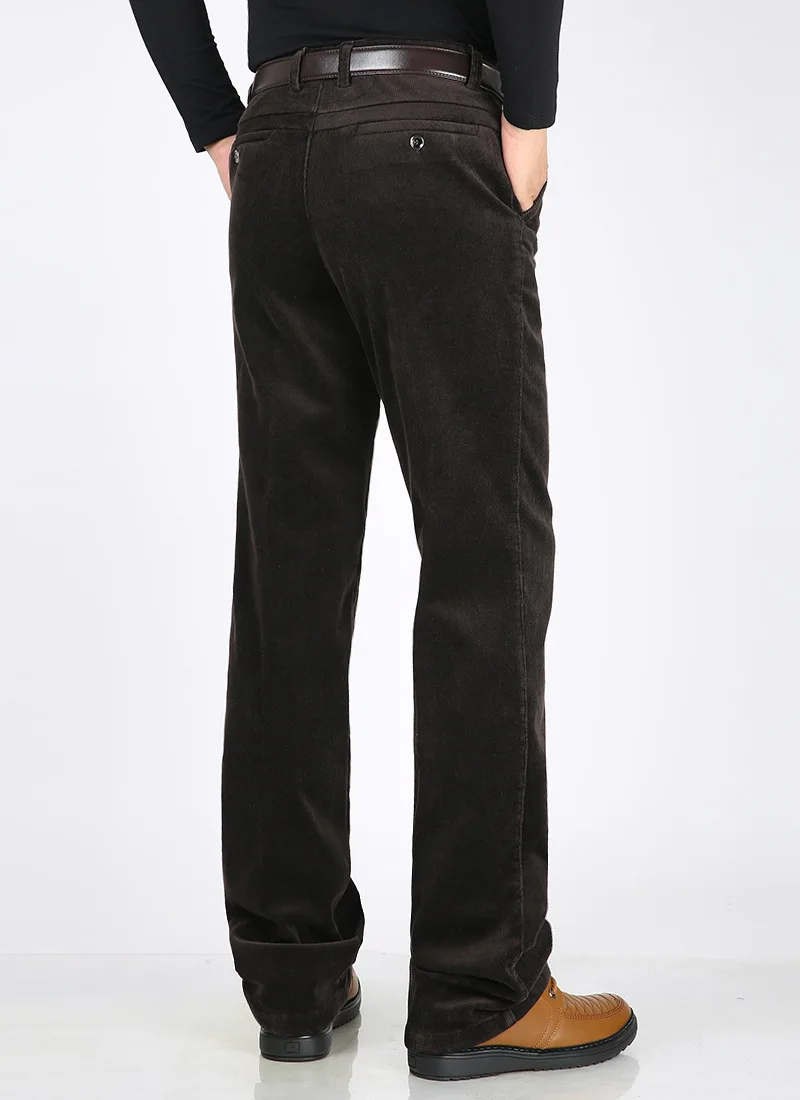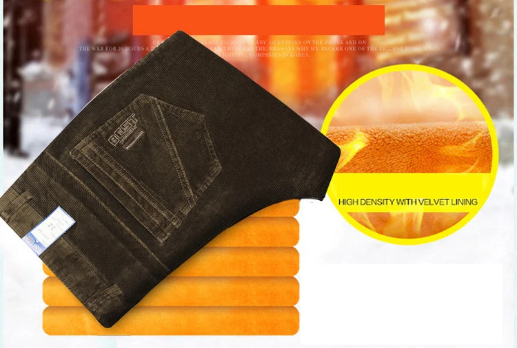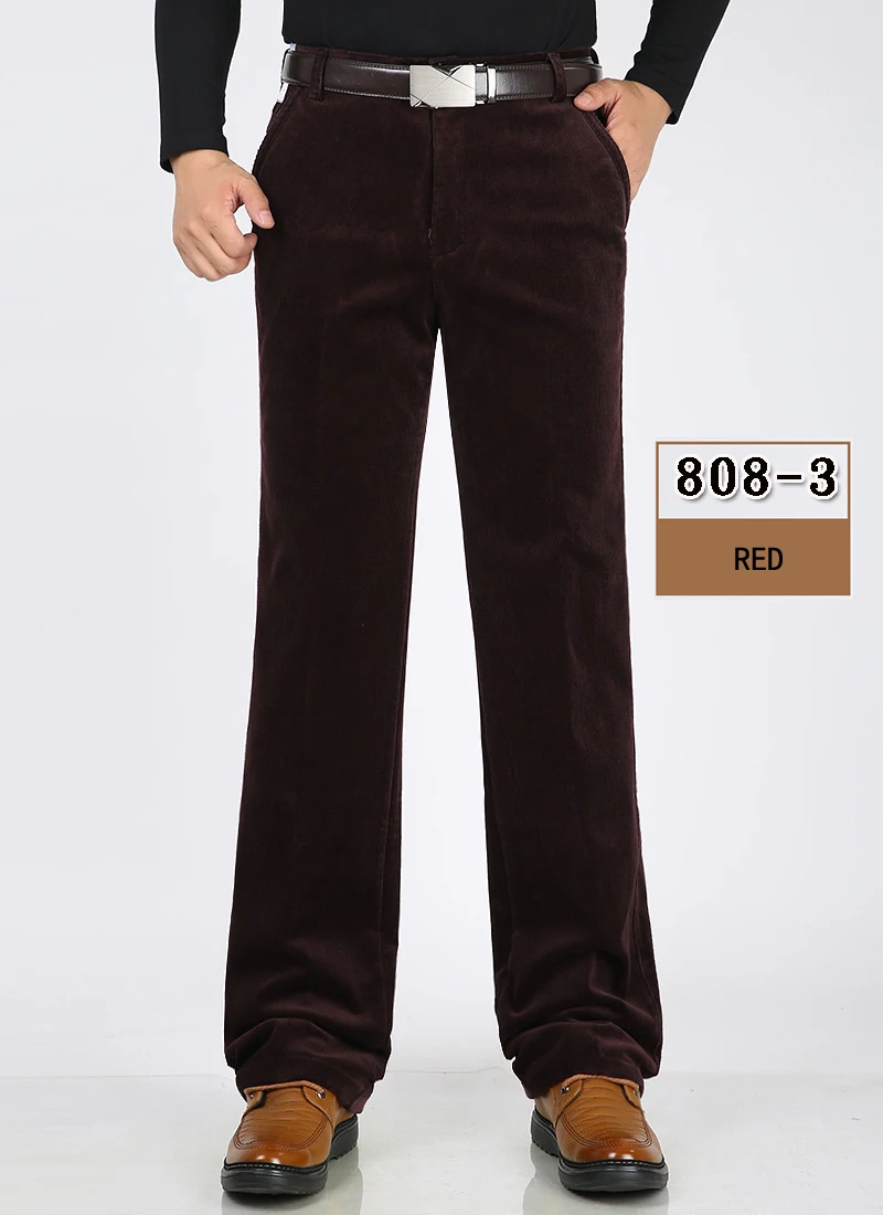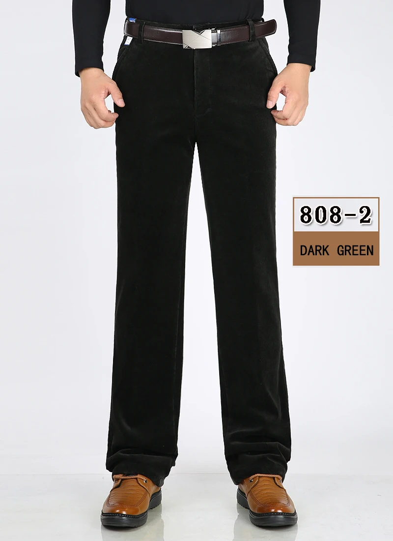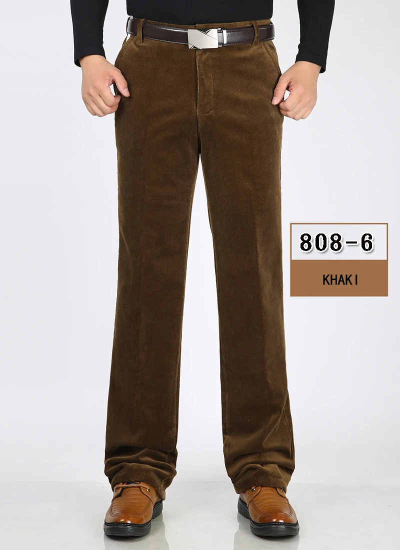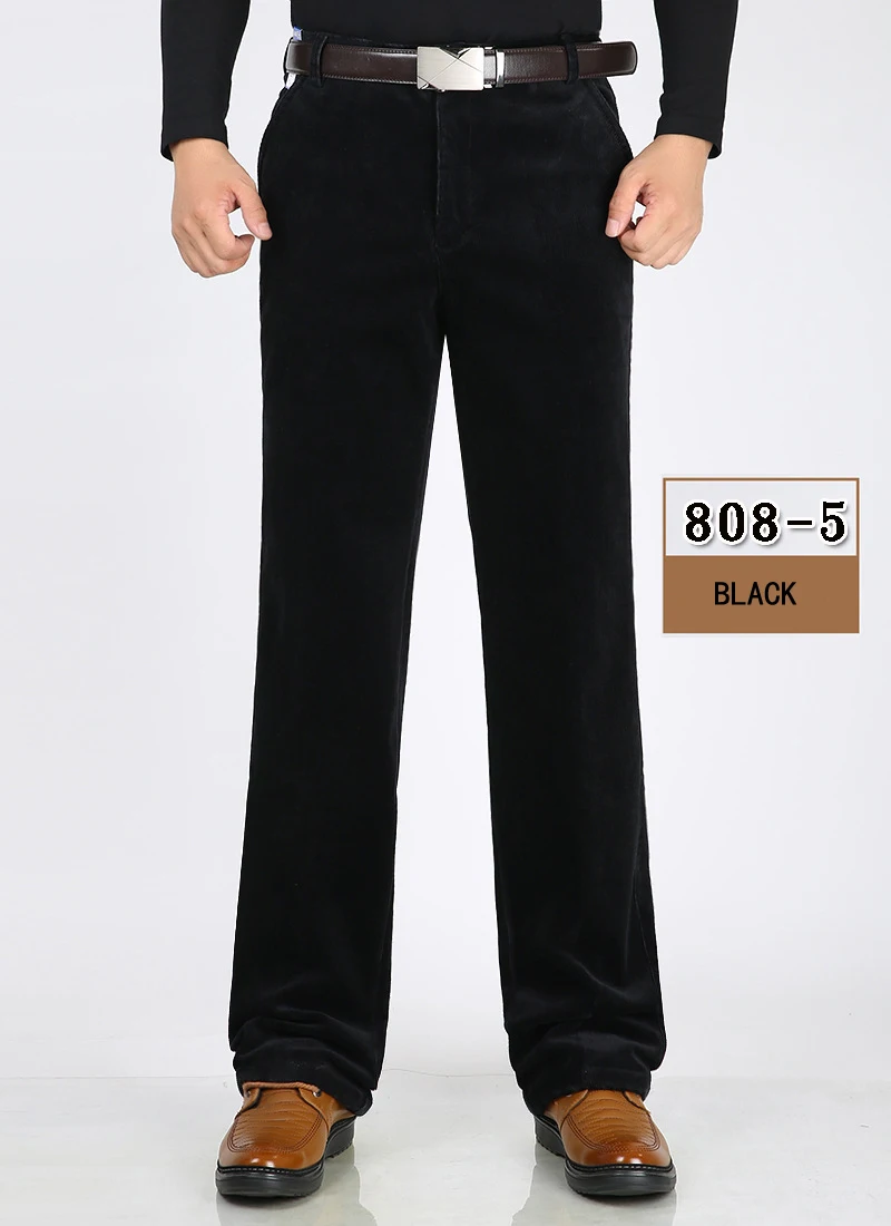 Вельветовые вельветовые брюки, для осени и зимы, мужские, деловые, повседневные, свободные, эластичные, для среднего возраста, прямые, на флисе, плотные, вельветовые