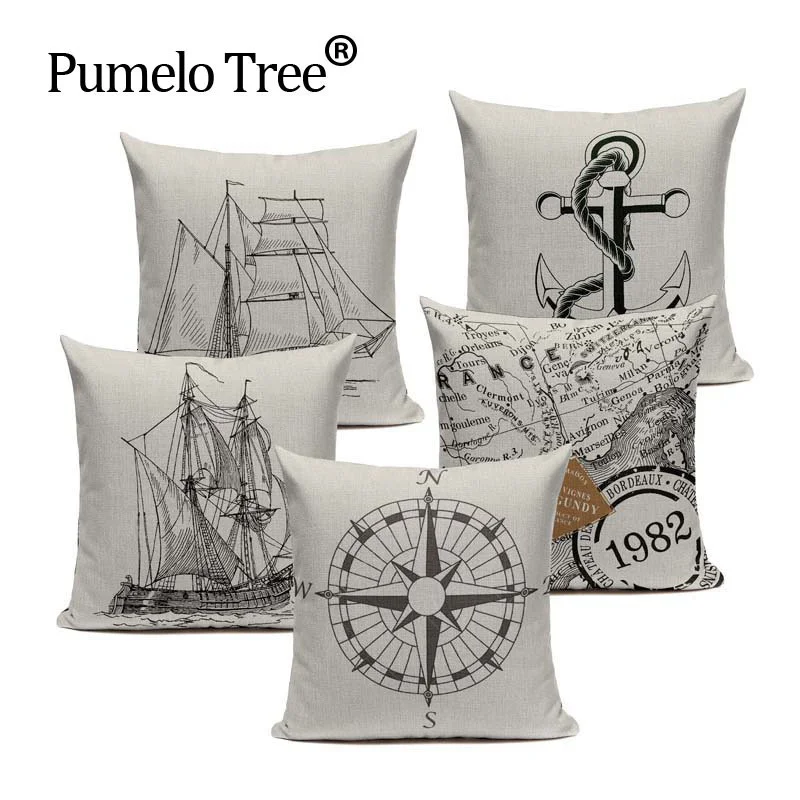 Настраиваемые чехлы на подушки винтажная наволочка в стиле океана для подушки черно-белые простые диванные подушки Скандинавское украшение для дома