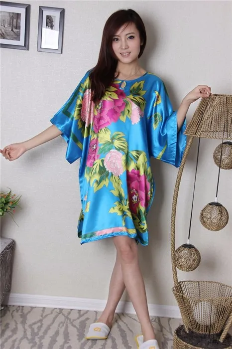 Синий женский халат, летняя Пижама, женское китайское кимоно, банна...