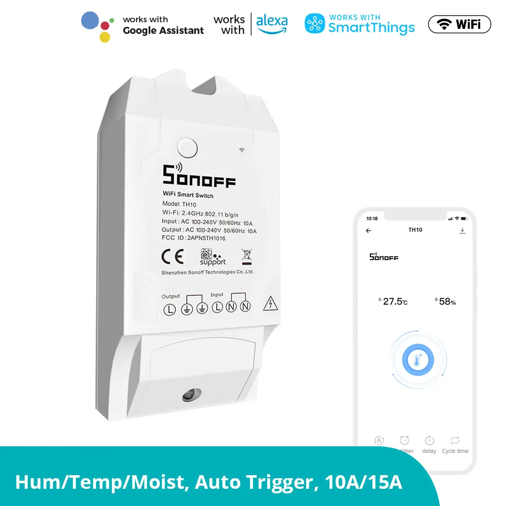 Sonoff TH10/TH16-это умный переключатель Sonoff, который может контролировать и устанавливать температуру и влажность через приложение eWeLink. Так же, как указано имя, новая версия Sonoff TH устройство поддерживает два блока питания Характеристики: 10A или 16A. Он поддерживает заданный диапазон температуры и влажности, когда температура и влажность окружающей среды попадают в диапазон, он автоматически включится или выключится подключенные устройства.