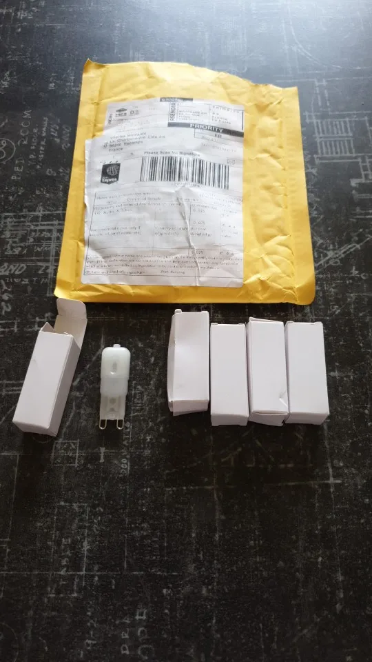 5500-7000k(Холодный белый)Входное напряжение: 220-240 В(Чип на плате) Срок службы: 30000 часовМатериал: пластикCRI>80RaОсобенности:1) легко установить, можно легко установить G9 розетки.2) Энергосбережение-значительно экономит затраты на энергию по сравнению с лампами накаливания.3) уменьшить частоту повторной лампы, сэкономить усилия и расходы на техническое обслуживание на часто меняющихся лампах.4) мгновенное включение в полную яркость.5) экологически чистый, без свинца или ртути, без УФ или ИК-излучения.Применение:Коммерческое освещение, студийное и выставочное освещение, домашнее освещениеПосылка включает в себя: 5 шт. G9 светодиодный светильник