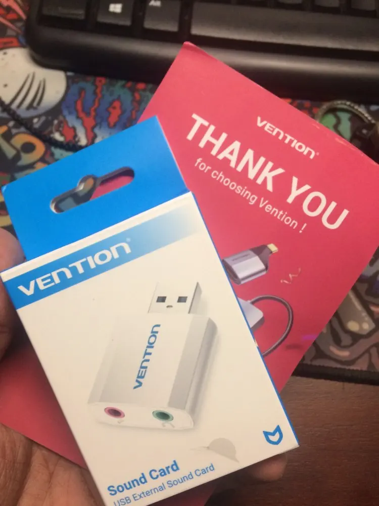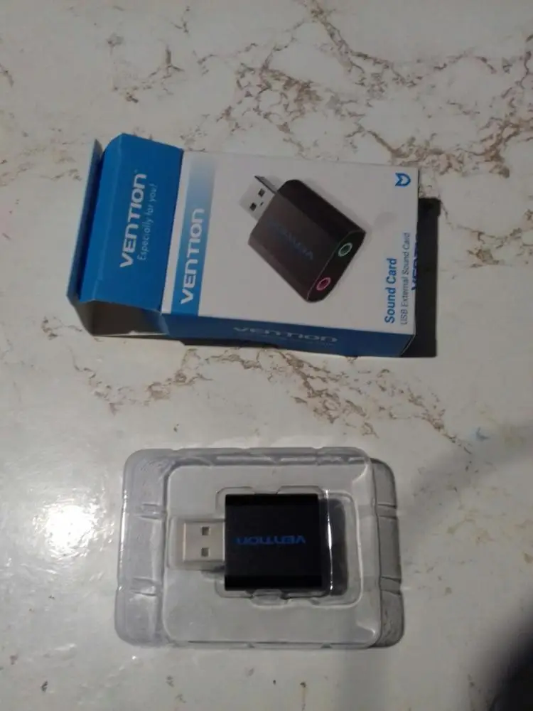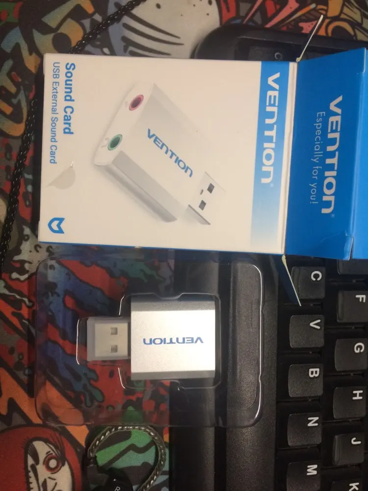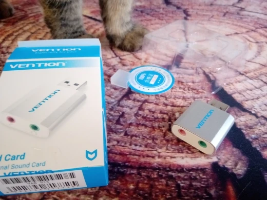 Посылка приехала в течении трёх недель, что вполне адекватно. Заказывал внешку потому что не работает в ноуте 3.5mm jack. Сама внешняя звуковая карта пришла в именном пакетике, в заводской маленькой коробочке с колпачком на штекере. Корпус внешки сделан то-ли из стоительного пластика (крепкий надёжный пластик), то-ли из алюминия, то-ли из какого другого металла, но корпус приятный на ощупь и довольно прочный. Свой функционал звуковуха выполняет на 150%, определилась виндой моментально, никаких дополнительных драйверов на неё не нужно. Благодаря данной внешней звуковой карте мои арматурные однодрайверные наушники (NICEHCK X49) превратились в игровые, разве что пришлось в эквалайзере подкрутить нижние частоты, ведь у однодрайверок они хреновенькие. Заодно подключил микрофон, работает отлично. Всем, у кого наушники имеют выход 3.5mm jack рекомендую эту внешнюю звуковую карту, за свою цену она шикарна. Всем удачи)