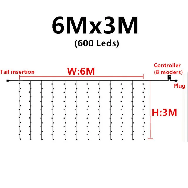 Уличная гирлянда 6*3 светодиодный занавес из сосульки гирлянда Сказочный свет 600 светодиодный Декор полоса для внутренней свадьбы рождественской вечеринки рождественская гирлянда гирлянда на окно