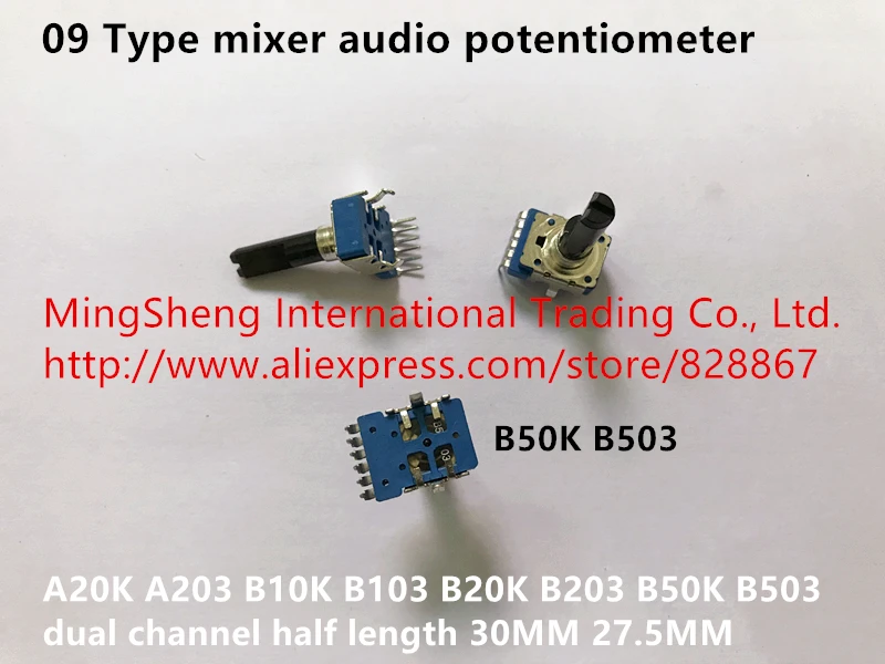 Оригинальный Новый миксер 100% 09 типа звуковой потенциометр A20K A203 Половина Длина 30 мм двухканальный B10K 27,5 мм B20K B50K (переключатель)