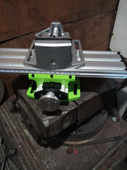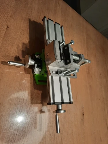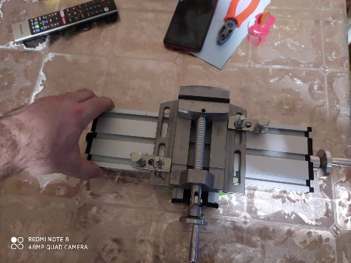 приспособлением доволен! всё как на картинке. при пользовании надо протянуть и законтрогаить все гаечки. есть небольшой люфт при подаче площадки .фрезировал в алюминьевом радиаторе площадку под светодиодную матрицу торцевой фрезой 12мм., получилось хорошо.