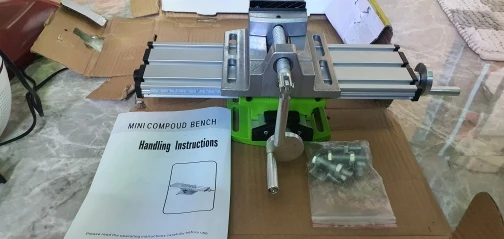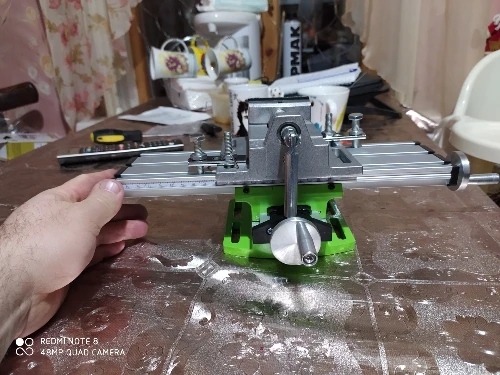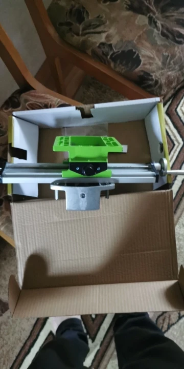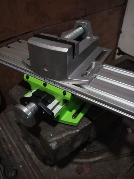 Доставлен заказ очень быстро, не ожидал такой скорости. По самому координатному столу: при движении сильно скрипит, надеюсь смазкой всё устранится. Имеется большой люфт маховика вала продольной оси.
