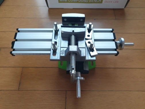 Доставка до Мос. области за 3 дня. Заказывал с тисками: тиски литые из аллюминия, массой меньше 0.5 кг, люфт ощутимый, губки из инструментальной стали (ок. 40Х), но очень тонкие (~1.25 мм) Позиционный стол так же из аллюминия, все несиловые детали закрыты пластиковыми крышками - очень понравились щитки над червяком поперечной подачи. Лимбы по 1.25 мм, люфт минимальный, резьбы подачи, похоже, метрические. После проверки постараюсь дополнить отзыв и фото