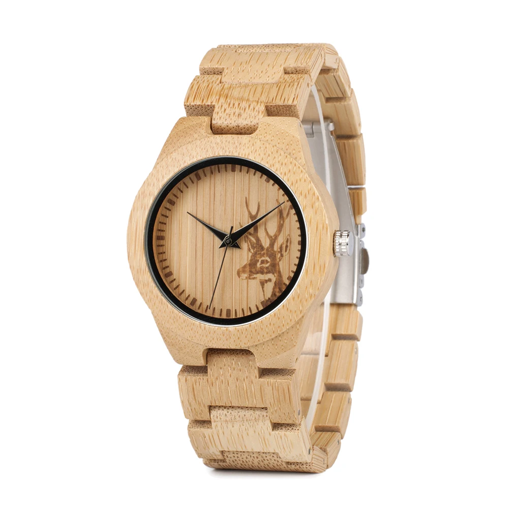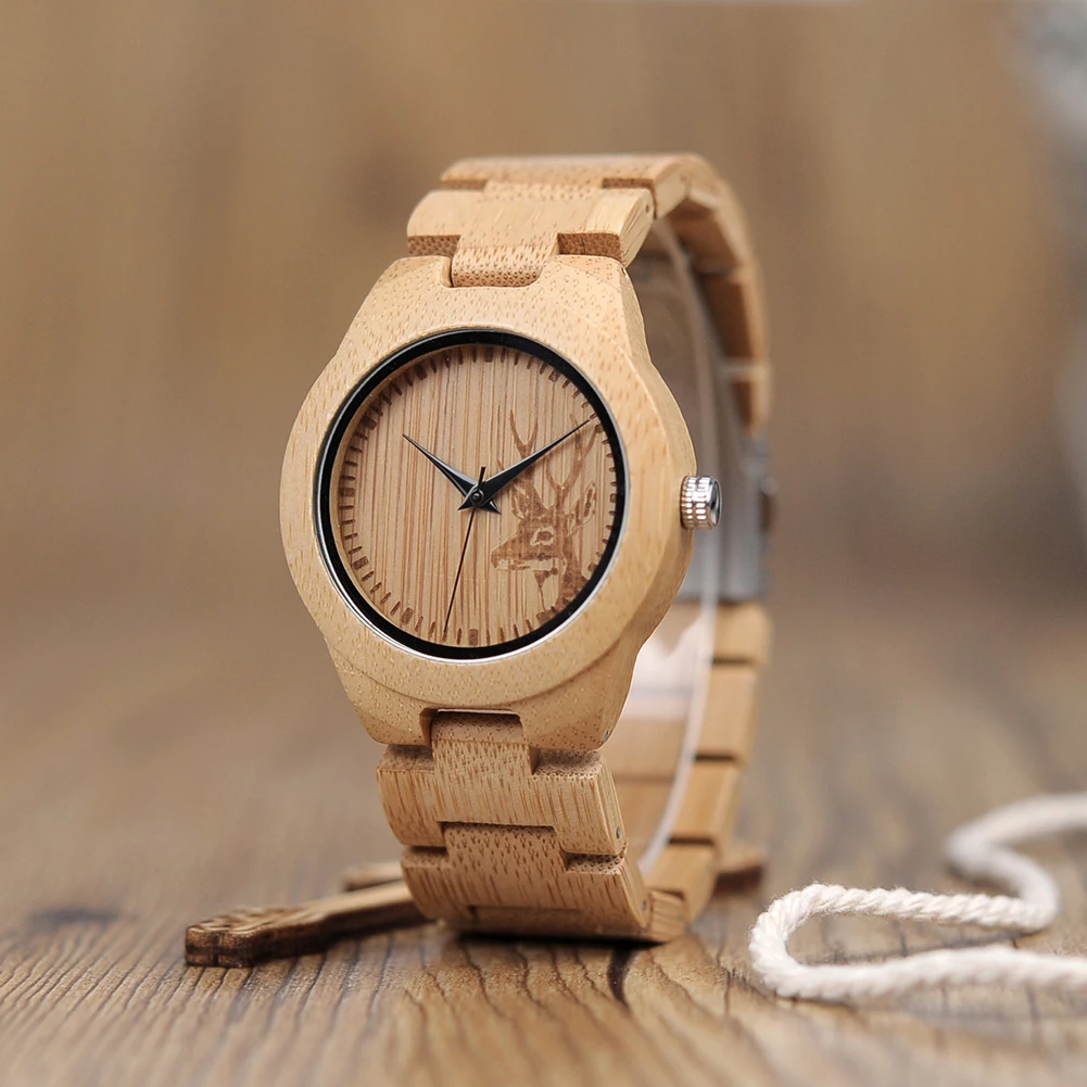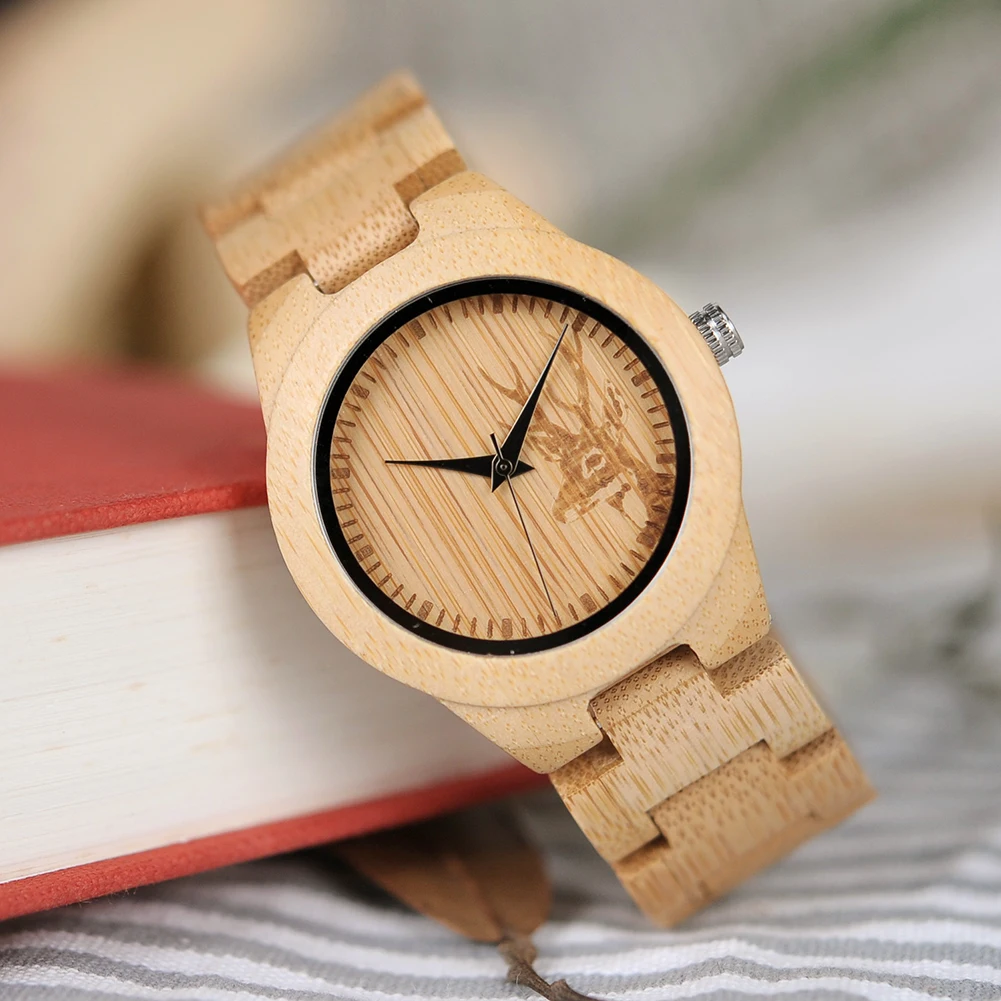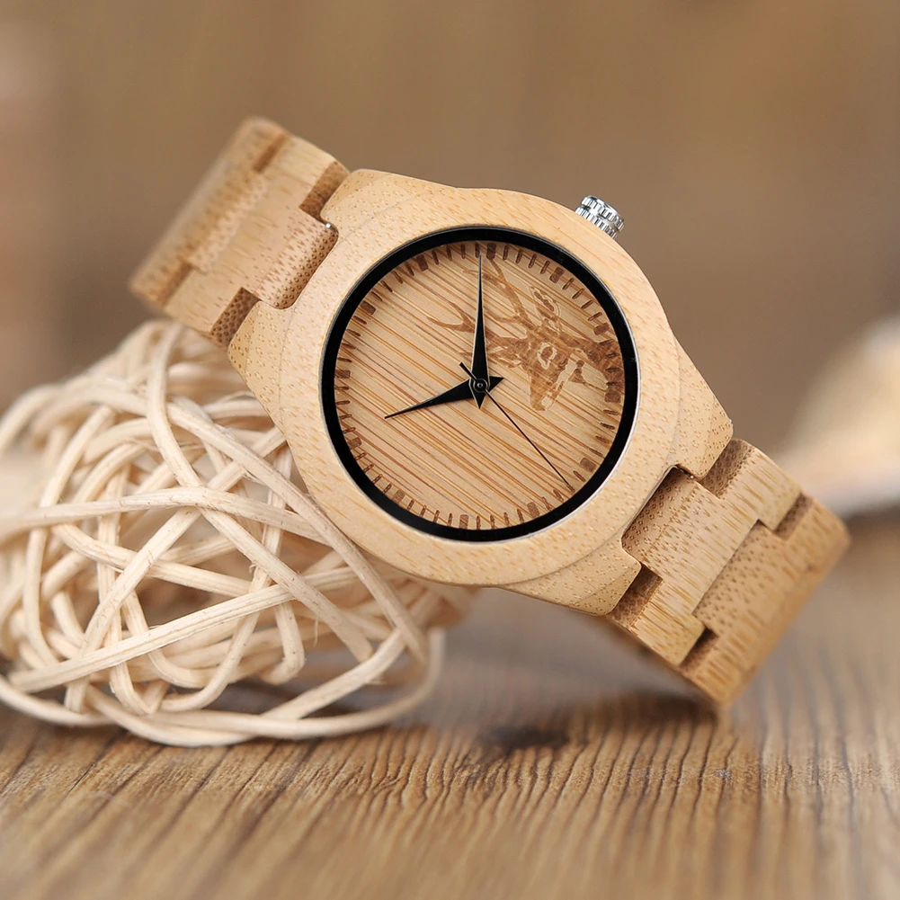 Часы женские кварцевые с бамбуковым ремешком, в японском стиле