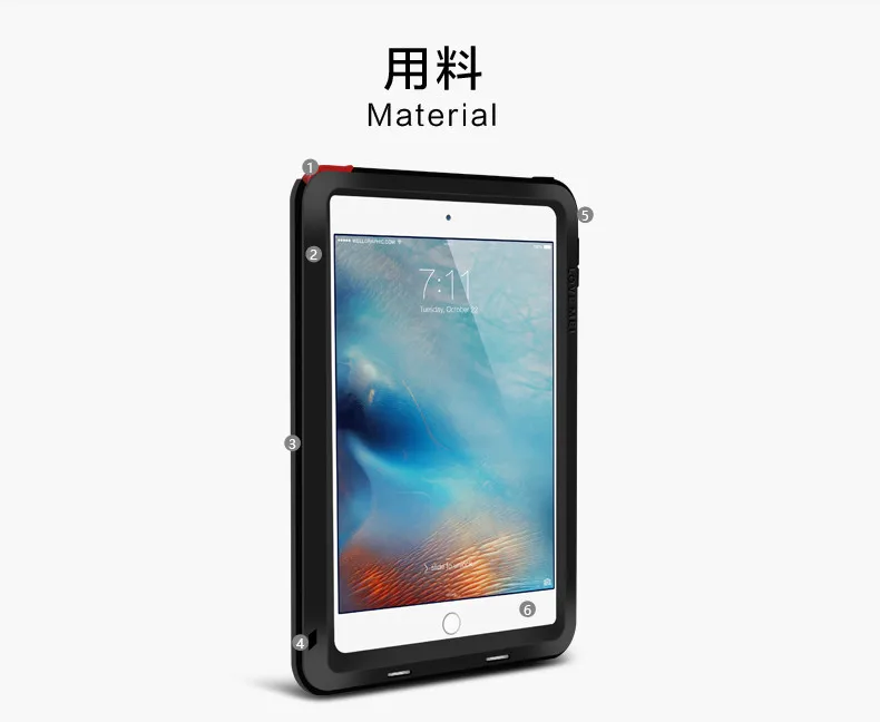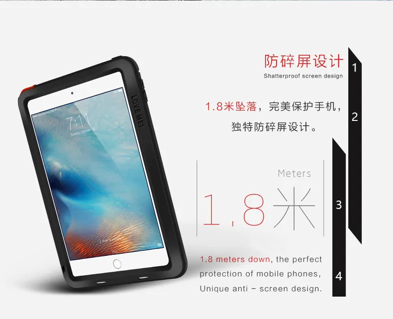 Мощный ударопрочный Алюминиевый Чехол Love Mei для Apple iPad AirAir 2Mini 23456, чехол Heavy wGorilla, закаленное стекло