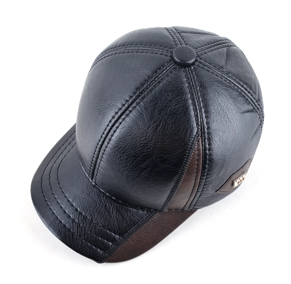 Мужская зимняя кожаная кепка, теплая Бейсболка в стиле пэчворк для папы, бейсболки с ушами, регулируемая русская бейсболка для мужчин, Кепка
