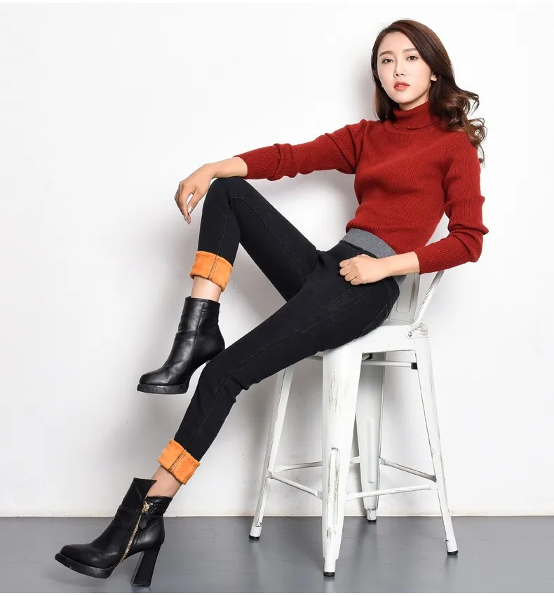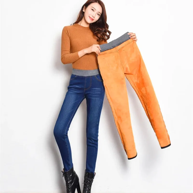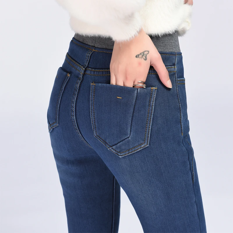 Женские джинсы-карандаш, теплые эластичные прямые брюки с вельветовой подкладкой, с высокой талией, большого размера, P8035, зима 2021