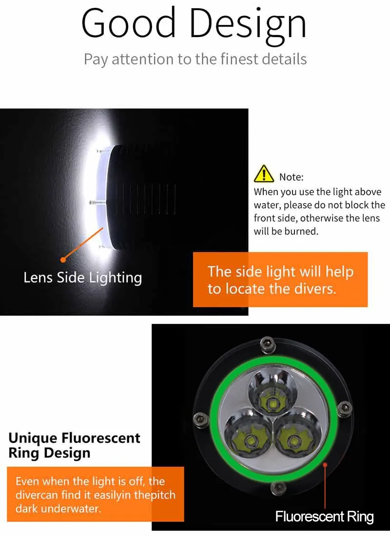 ARCHON DH30 II Подводный фонарь для дайвинга 3 * CREE XM-L2 U2, макс. 3600 люмен, подводсветильник фонарь для фотосъемки 100 метра