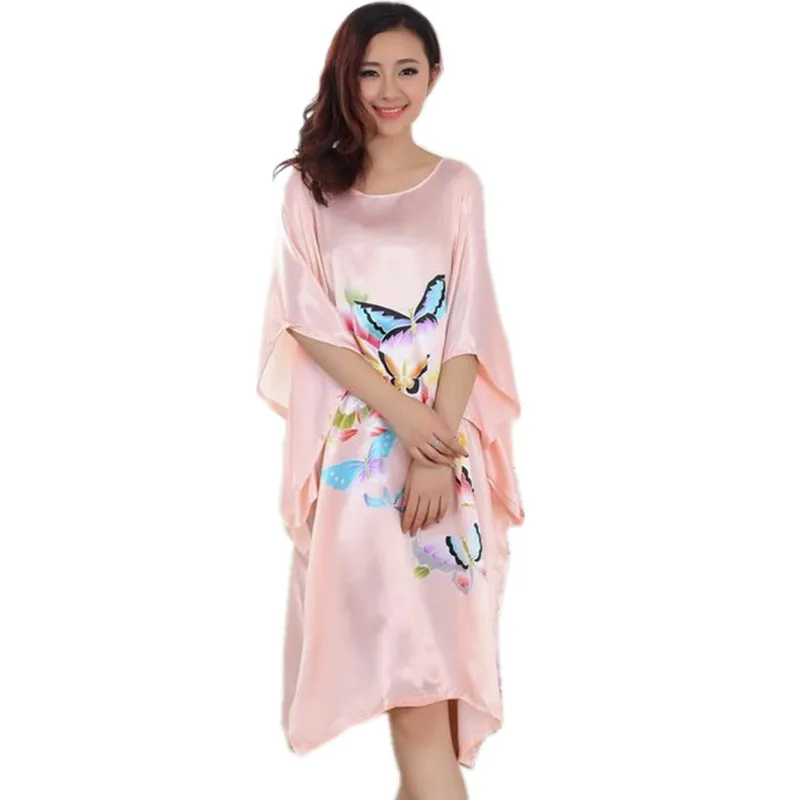 Модное китайское женское шелковое кимоно, банное платье, один размер