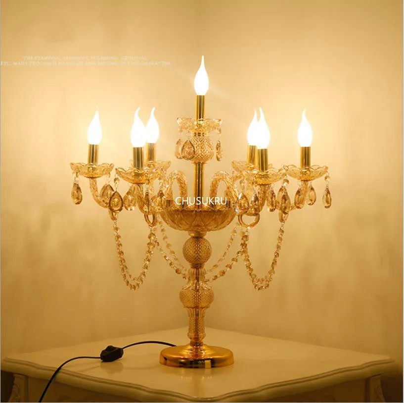 Luxruy E14 Хрустальная настольная лампа в форме свечи, модная Хрустальная настольная лампа с абажуром, лампа для гостиной и спальни, хрустальный стол K9 Top