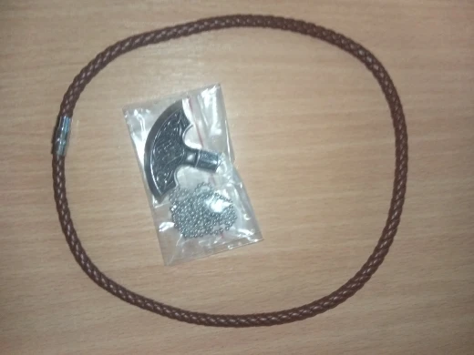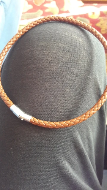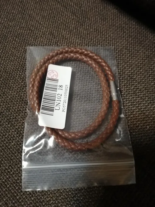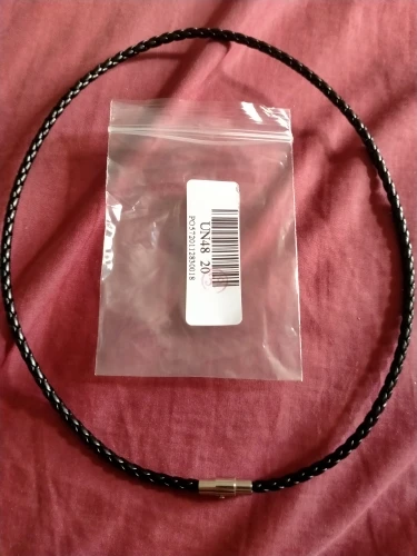Покупала для подвески. Не смогла продеть в ушко кулона из-за достаточно большой застёжки. Придется покупать что-то другое. На кожу не похоже, скорее кожзам.