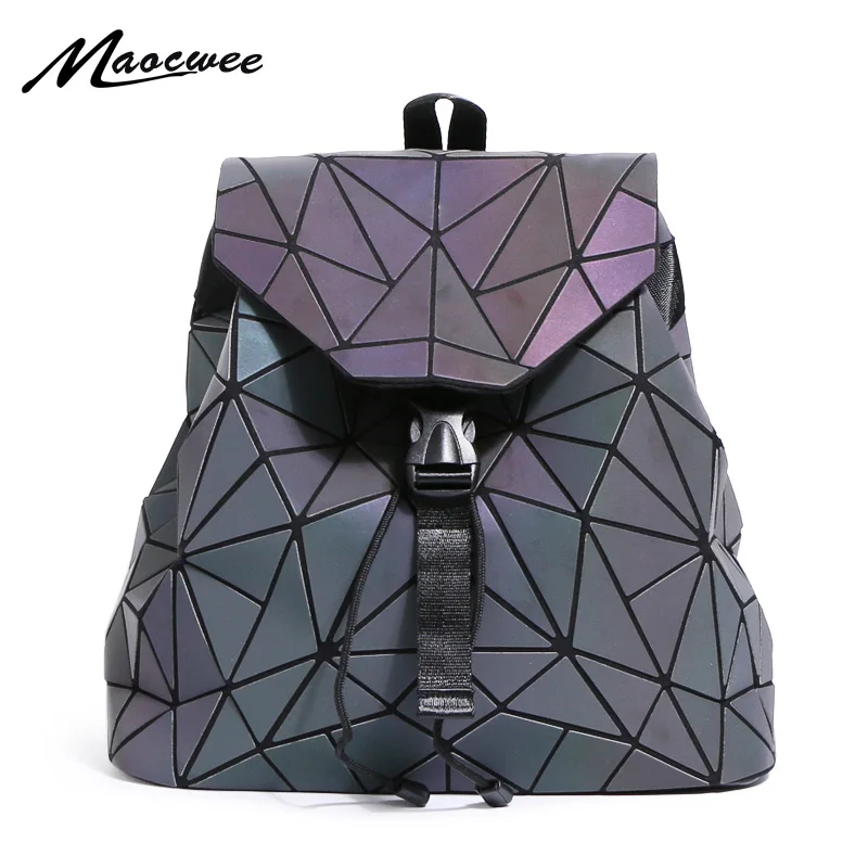 Маленький рюкзак для девочек-подростков, школьный рюкзак на шнурках с голографическим изображением зеркало с геометрическим рисунком