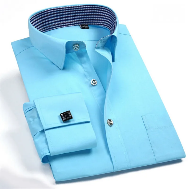 ФормальныеРубашка для мужчин БрендВ полоскуФранцузские запонки Мужская рубашка с длинным рукавом