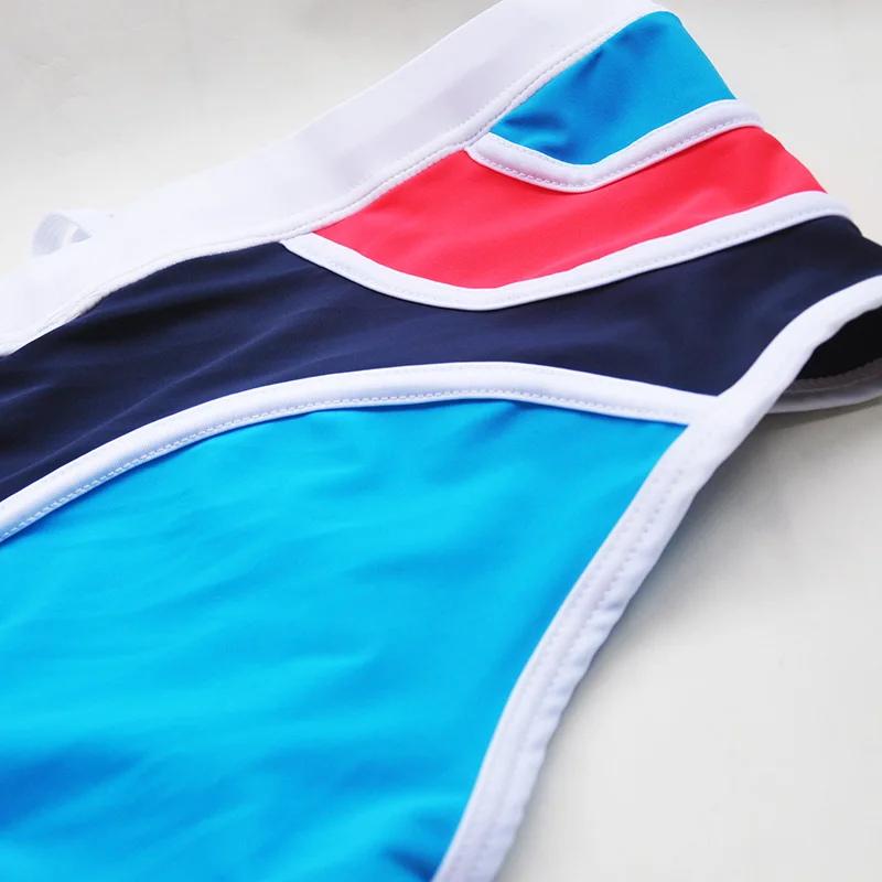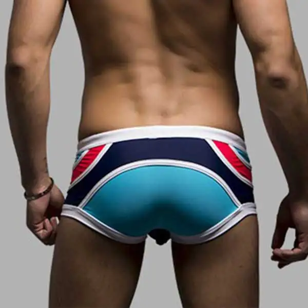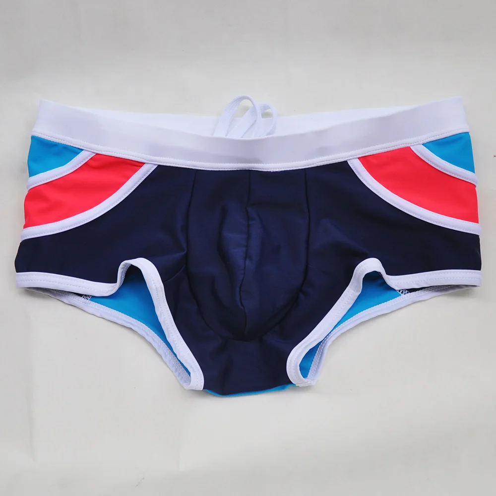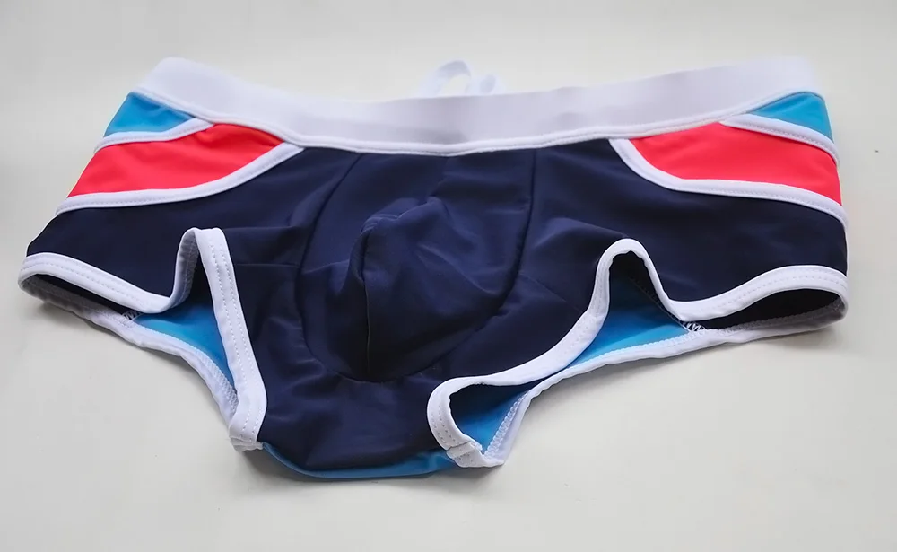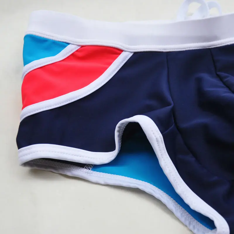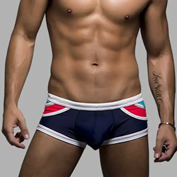 Мужские плавки-боксеры, сексуальные плавки с заниженной талией, мозаичные шорты в полоску, костюм для плавания для мужчин
