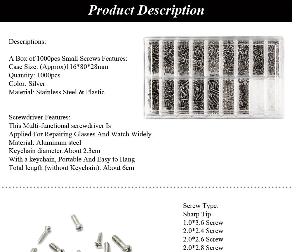 1000 шт. Нержавеющаясталь Micro Винты Набор инструментов для очков солнцезащитных смотреть винты для телефона ногтей гайки отвертки набор, набор инструментов для ремонта