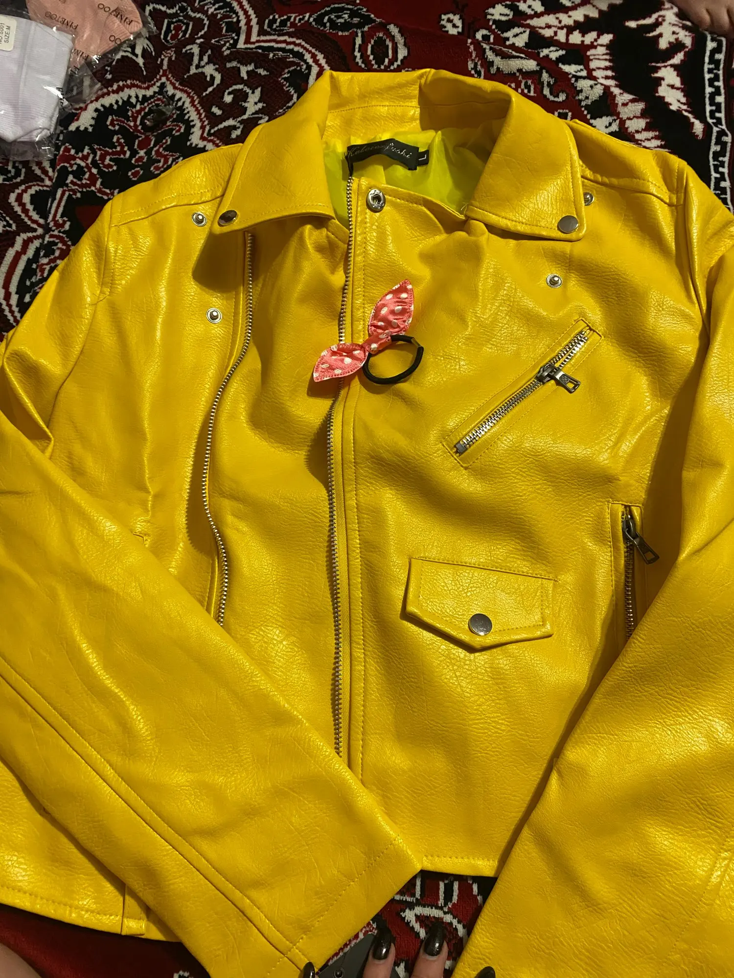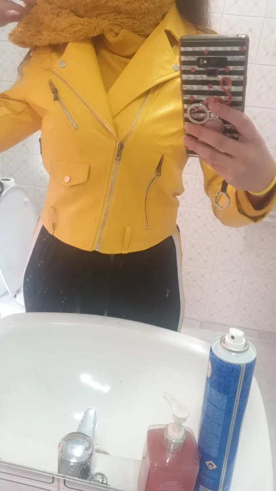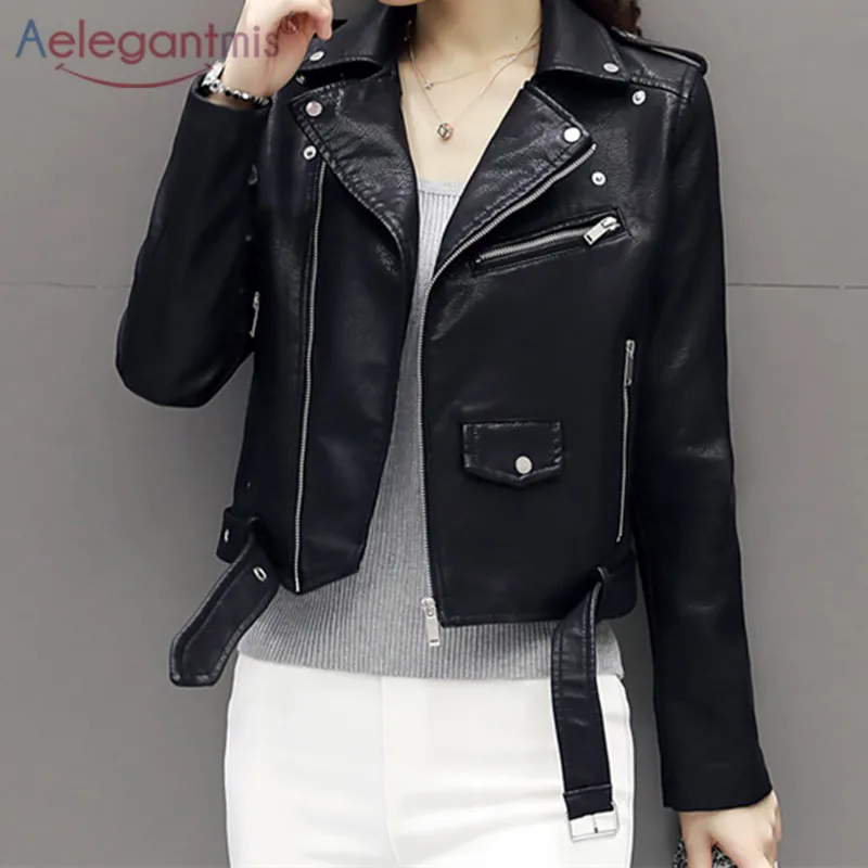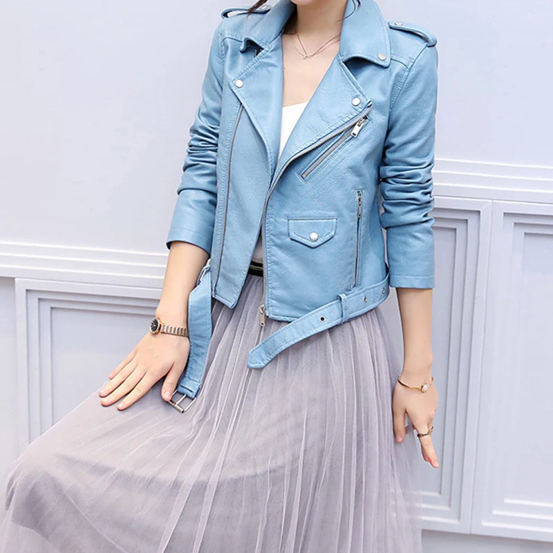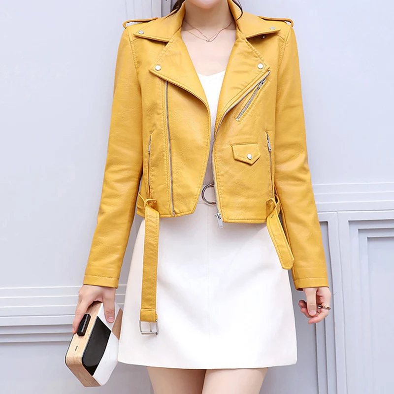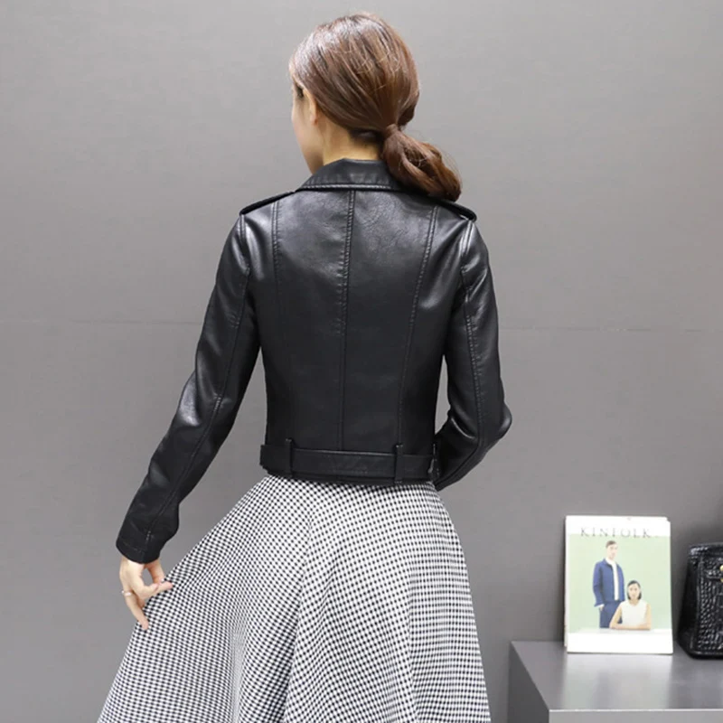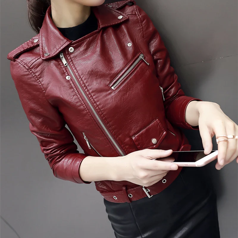 Куртка женская короткая из искусственной кожи на молнии, осень