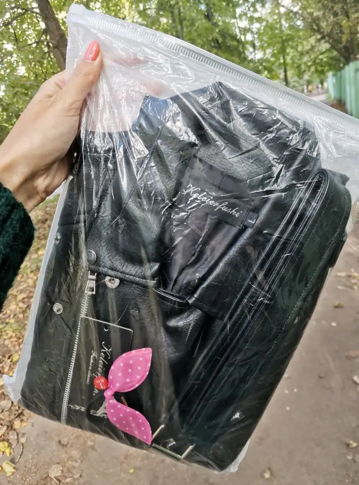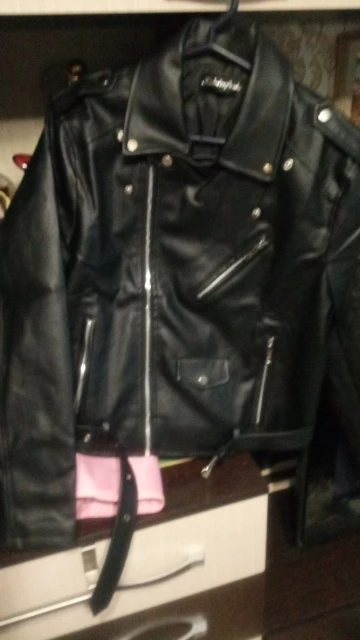 Заказала 9.09, пришло 25.09. Брала за 1700р 3хл на ог-95 от-78 об-104, рост 169. Свободная, но взяла бы меньше, было бы хуже. Куртка пипец тонкая, почему никто об этом не пишет, непонятно. За эту сумму могла быть и поплотнее. Паркая и не дышащая, думаю холодно в ней не будет. Прям видно, что тонкая и кожзам, но если вас сильно это не парит, то хорошо. А так, конечно, думала будет плотнее. За 2000 можно в местных магазинах получше взять. Ремень говнище. Куртка воняет кошаками и клеем и вонь к телу липнет, надеюсь выветрится. Имеются торчащие нитки