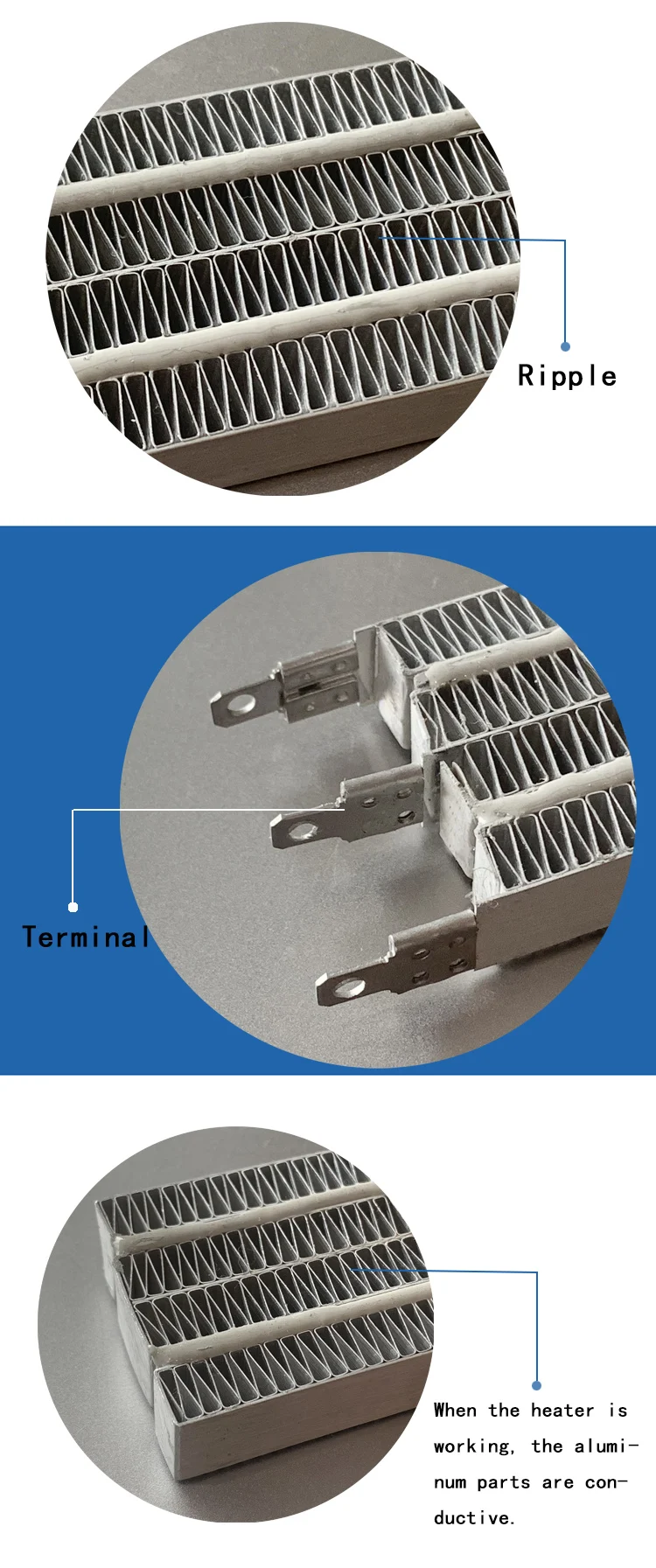 Когда нагреватель работает, алюминиевые детали являются проводящими.