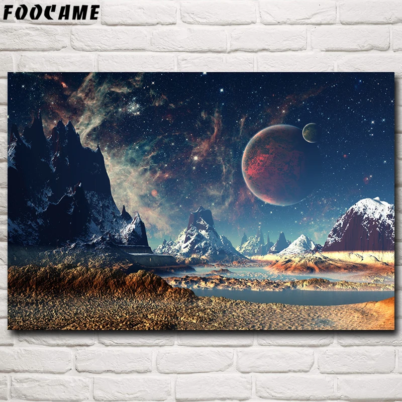 Звездные планеты, космические горы, природные украшения для дома, современное настенное искусство, шелковая Живопись, плакаты и принты, фотографии, гостиная