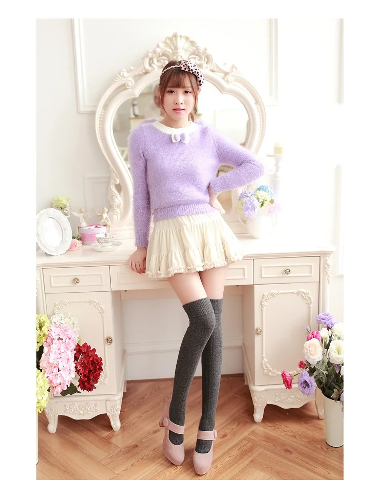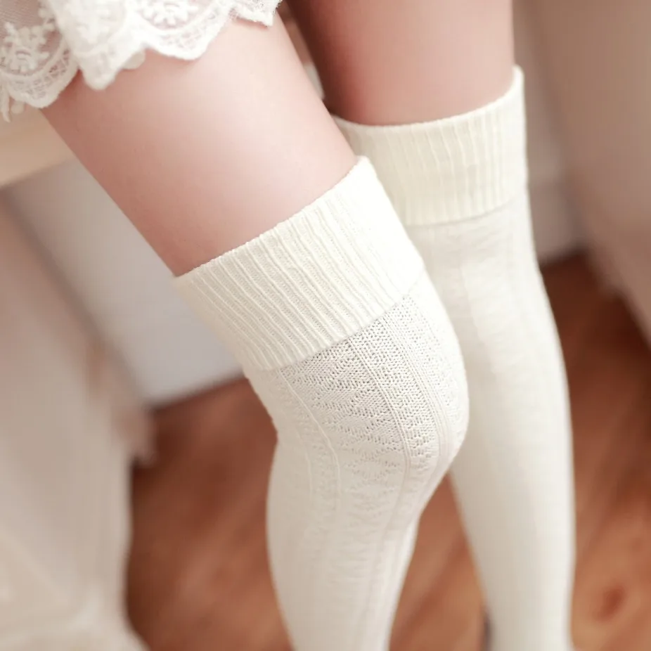 Толстые вязаные чулки до колена, Хлопковые женские чулки, женские студенческие чулки с тонкими ногами, белые, черные