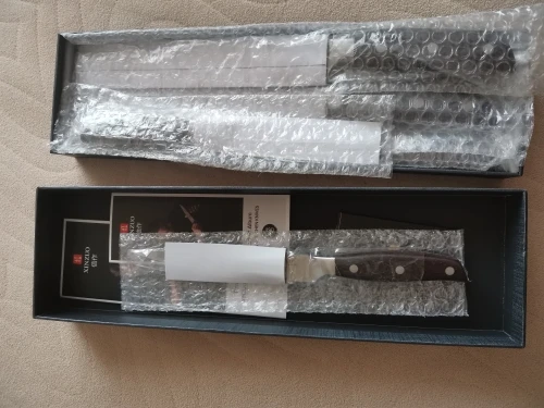 Ножи шикарные! Хорошая подарочная упаковка. Тяжеленькие, литые, очень острые, ручка удобная, приятная. Ими рубить можно. О прочности стали говорить рано, пока, как они поведут себя при заточке, как острота сохраняется, покажет время. Доставка была не очень быстрая, хотелось бы побыстрее.