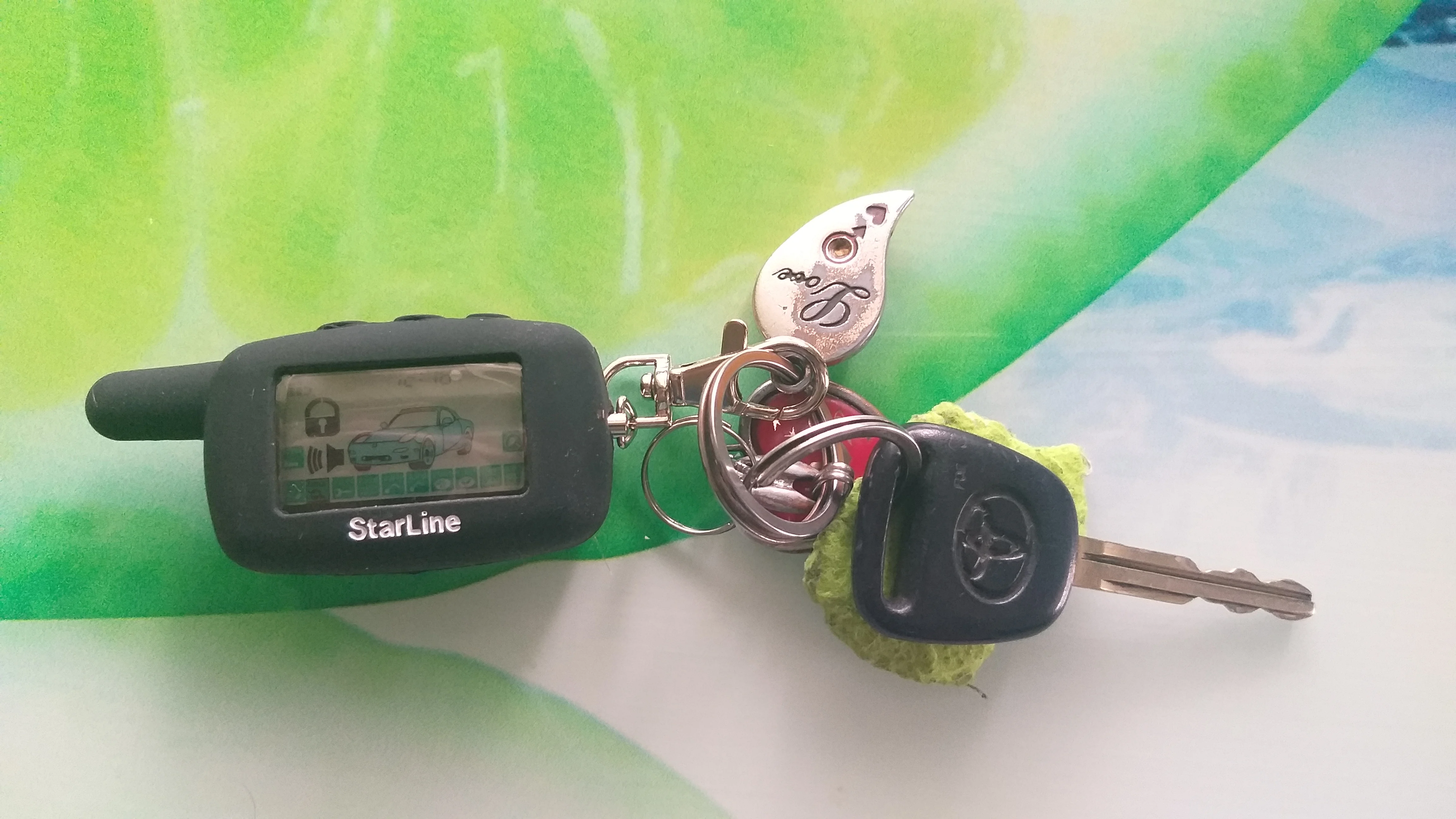 товар получил в течении 2 недель,был объединён в один пакет с другими заказами,внешне всё чётко,как и просил у продавца сделать надписи старлайн и там и там,всё сделано,на вопросы продаван не отвечает,как привежу брелок отзыв дополню,а так всё красиво и чётко