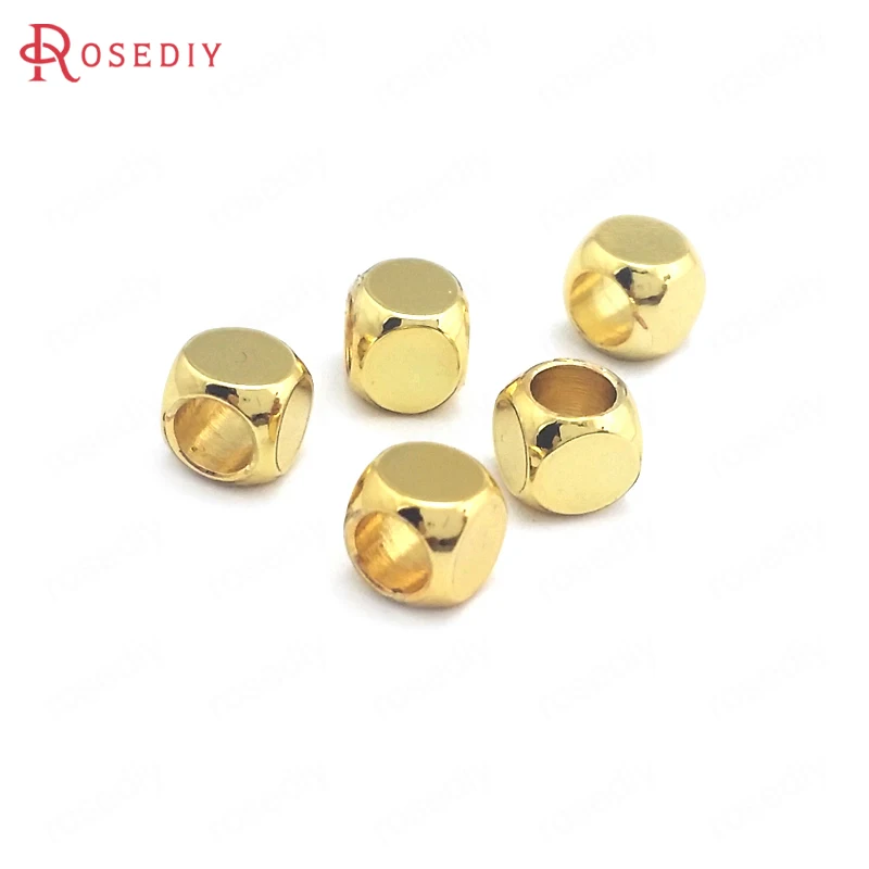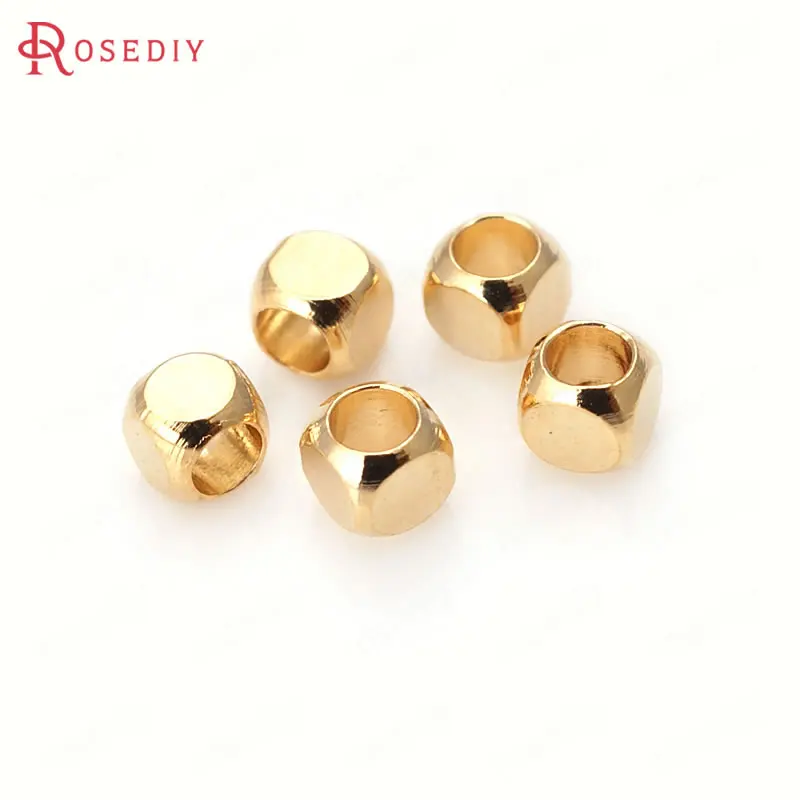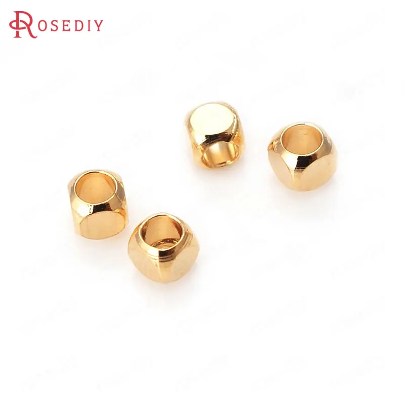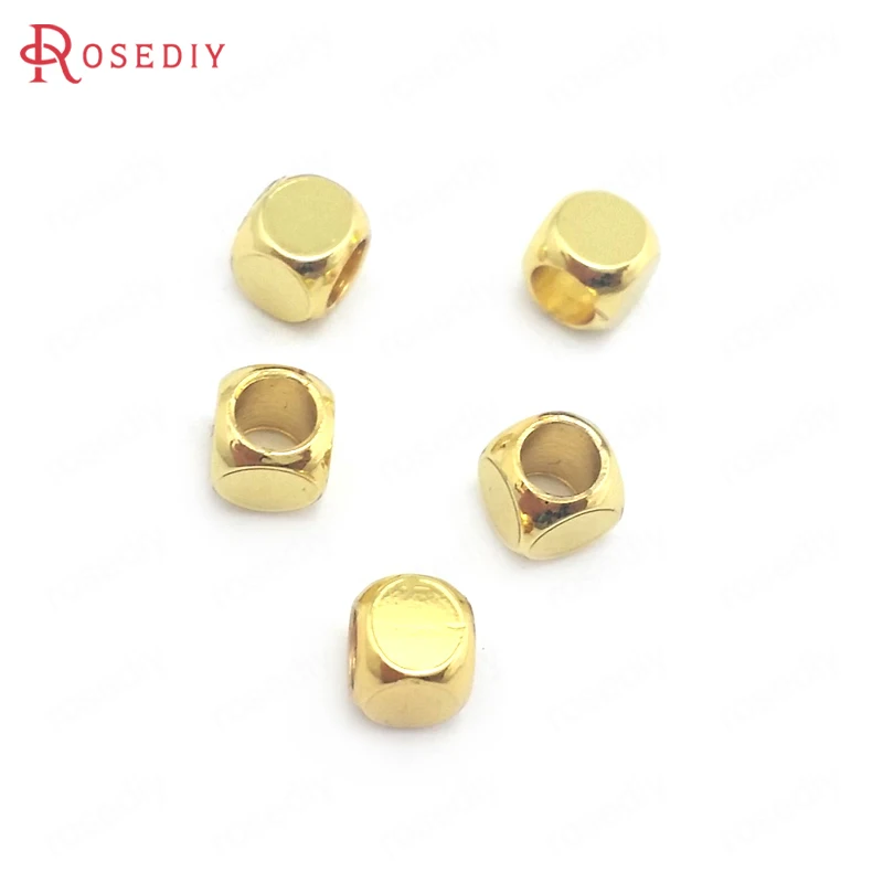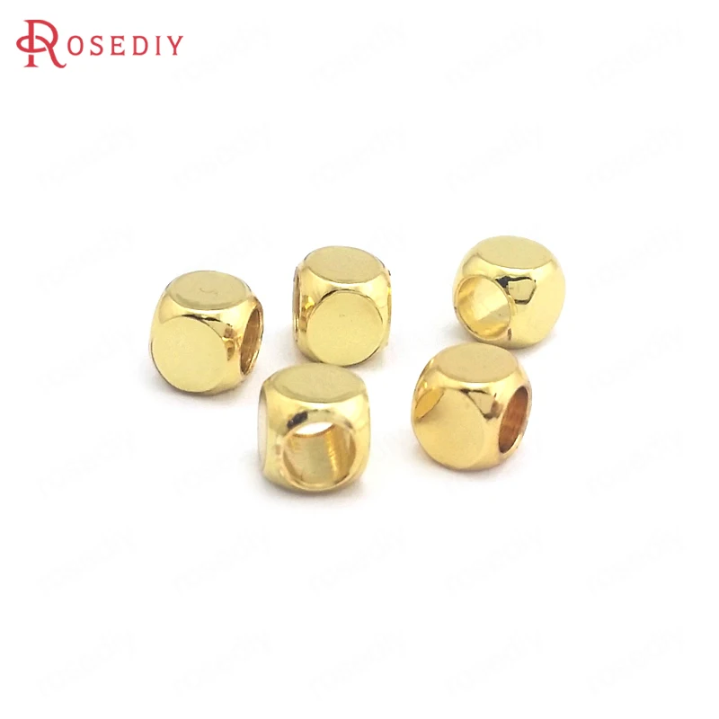 Бусины из латуни квадратные разделители пробы золотого цвета 3x3 мм 4x4 мм 24 к для изготовления браслетов, ювелирных изделий, аксессуары для рукоделия, 40 шт.
