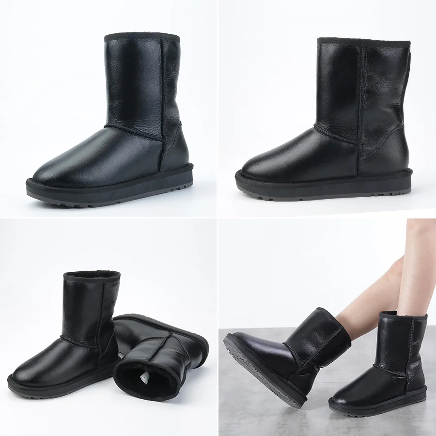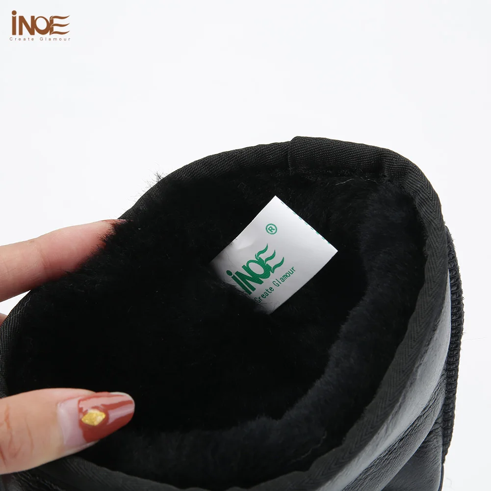 INOE Классические женские зимние сапоги до середины икры с подкладкой из натуральной овечьей кожи и меха на меху Теплая непромокаемая обувь Черный Серый