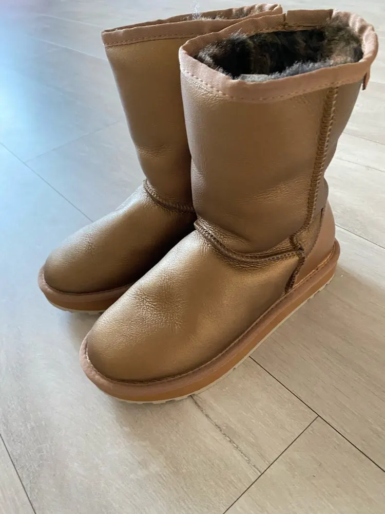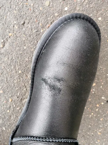 я уже писала отзыв на предыдущую пару уггов, скажу, что верх не кожаный, а какая то фигня клееная.внутри мех тоже не поймешь, толи овчина, толи искусственный мех. так что думайте сами. а эта кожа, как они ее называют, не дай бог зацепить чем то жестким, то дыра обеспечена.