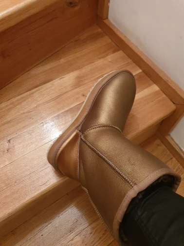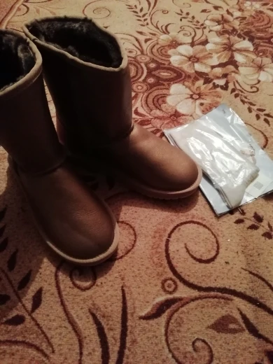 Отличные угги. Отлично моются влажной тканью от грязи, тёплые. Немного отличаются от традиционных угг тем, что подошва жёстче. Но, это совсем не портит обувь. К сожалению, мне они оказались большеваты (взяла 9 на размер 37). На полную икру не подойдут. Закажу себе поменьше и ни разу не пожалею.