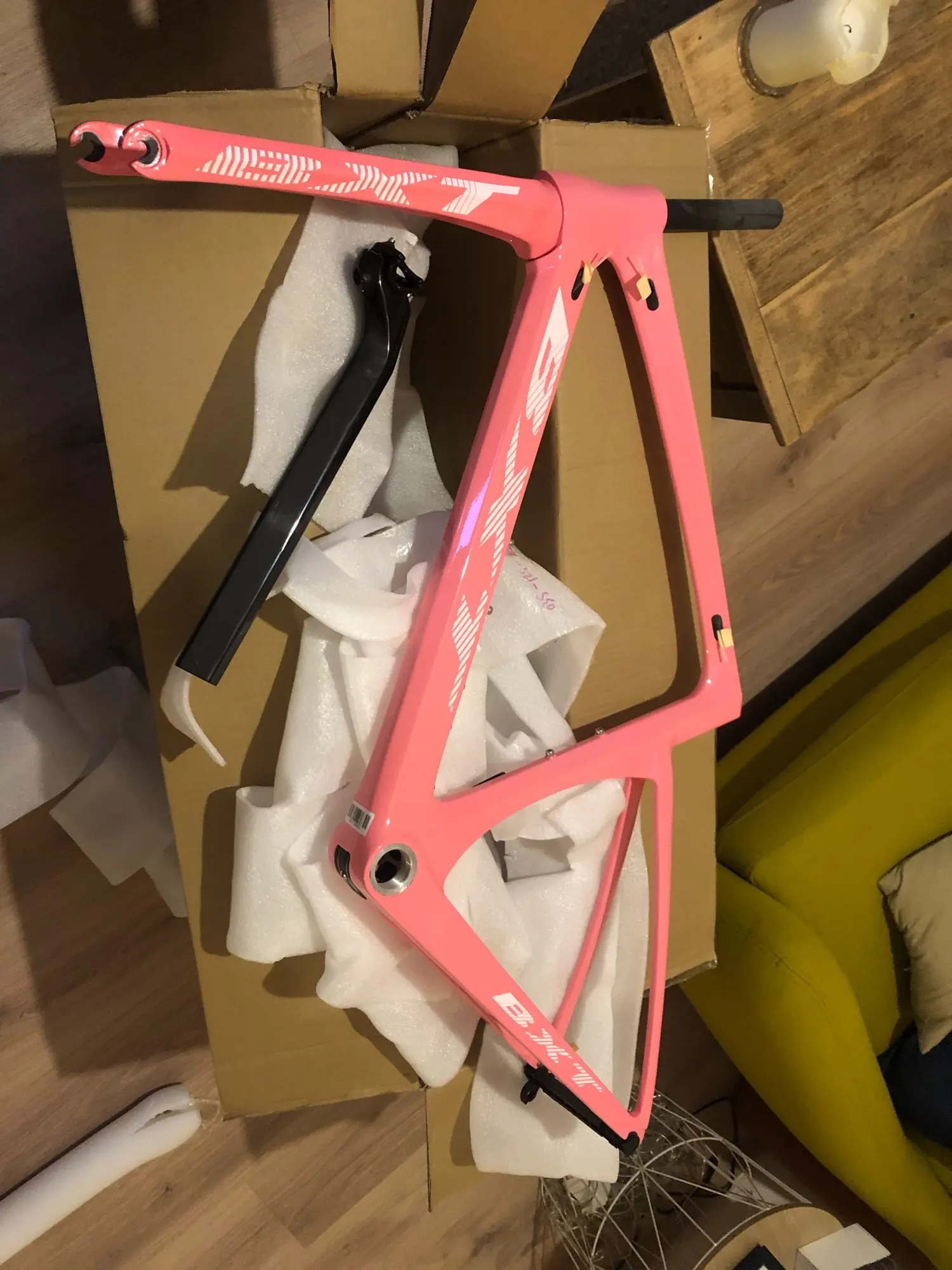 Фантастическая рамка. Вес точно соответствует описанию, он сильный и все хорошо сочетается. Единственный вопрос, который у меня был, это соскальзывание подседельного штыря, но использование большого количества углеродистой захватной пасты и затягивание зажима регулярно, кажется, делает трюк. Я не могу быть счастливее! Доставка в Великобританию занимает около 6 недель с использованием стандартной доставки aliexpress.