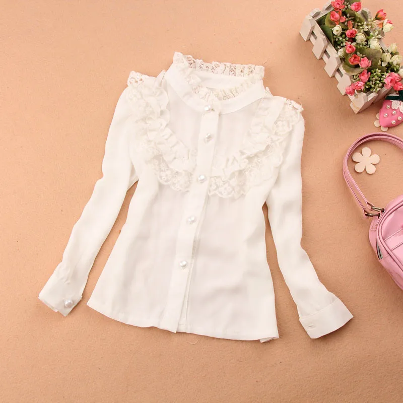 girls blouse fallWhite Blouse Long Sleeve School Girl Tops Kids Shirts Clothes