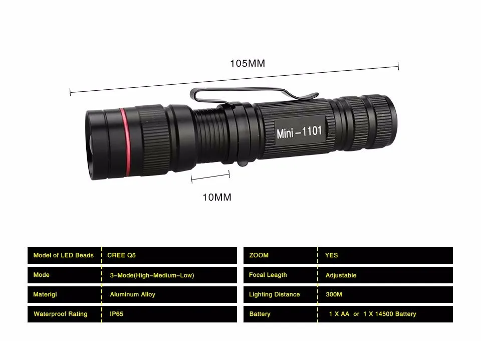 1. Корпус этого фонарика изготовлен из высококачественного алюминиевого сплава, и он имеет очень прочную конструкцию